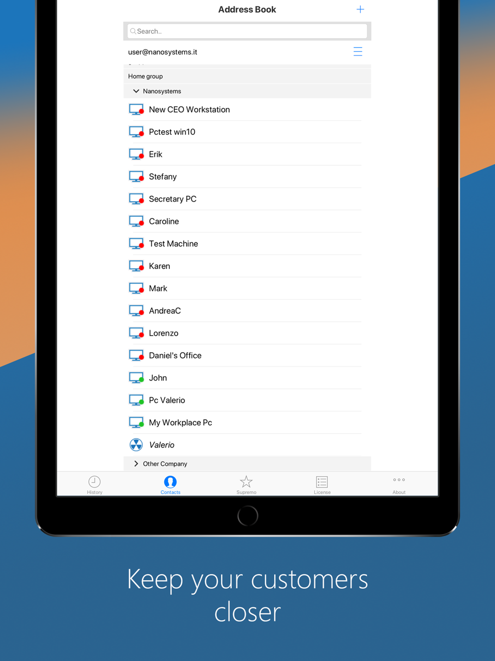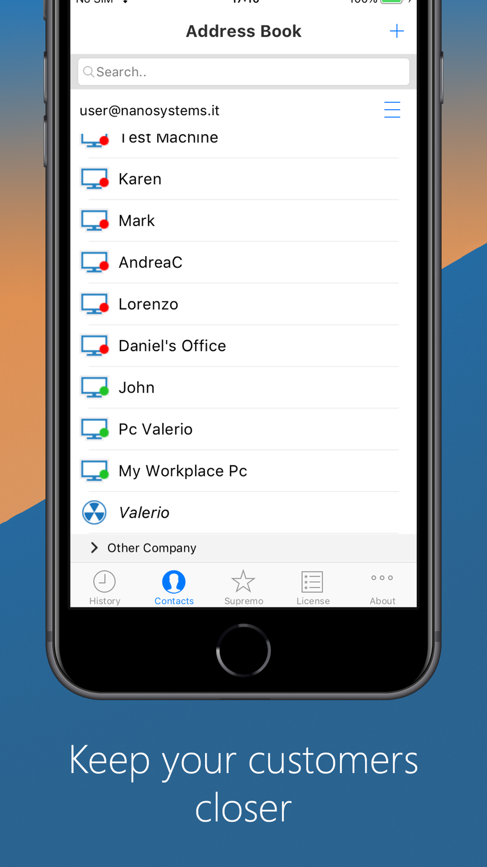 Supremo Remote Desktop is a powerful, easy and complete solution for remote desktop control and support. It allows to access a remote PC or join a Meeting in just a few seconds. Supremo is also compatible with USilio, the IT Management Console.