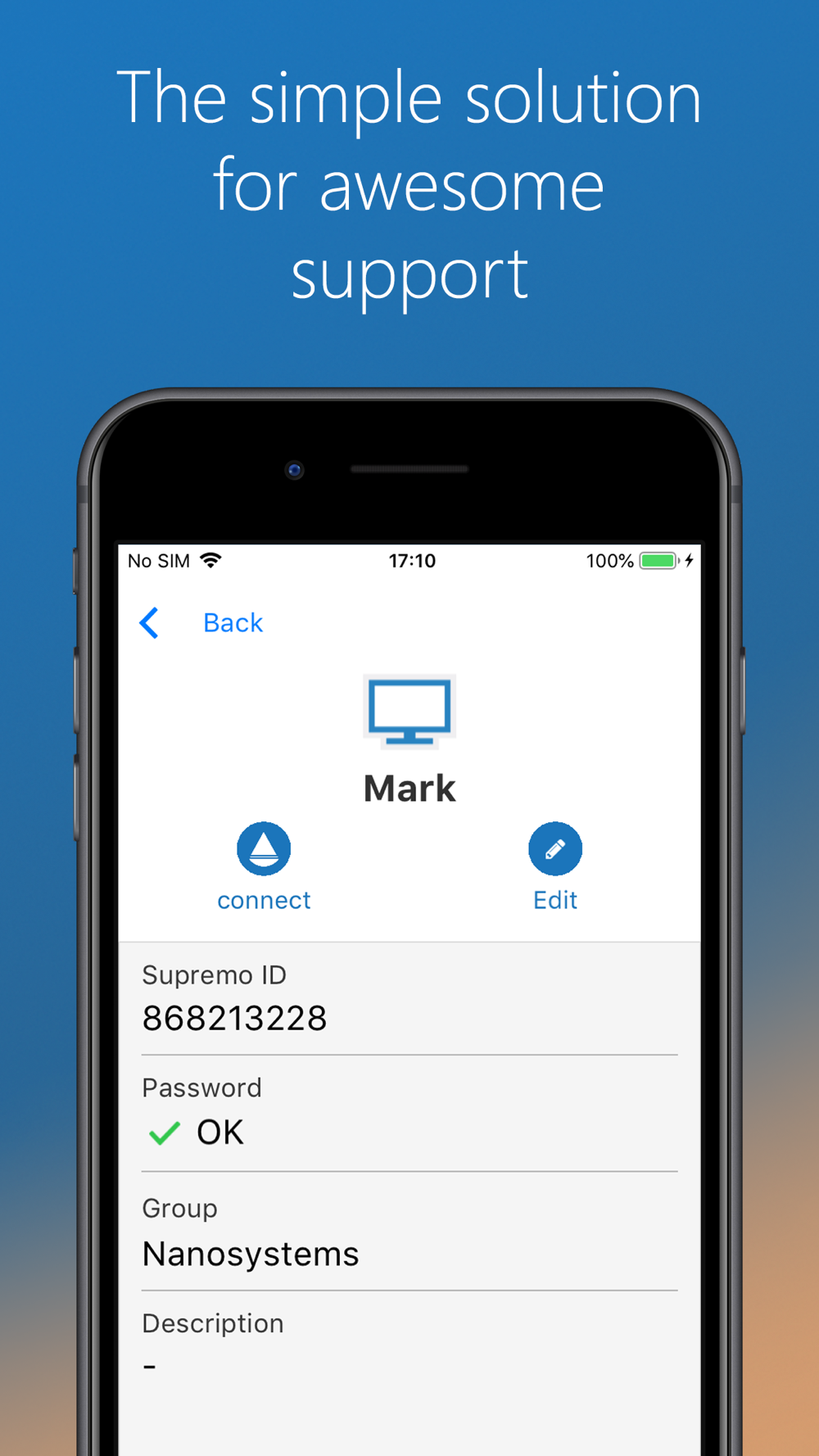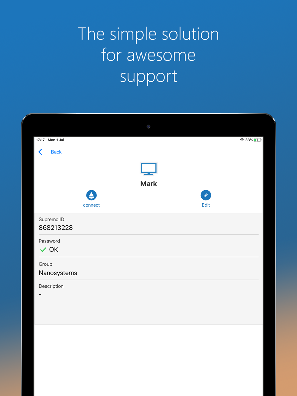 • Remote control PCs and servers, from your personal device