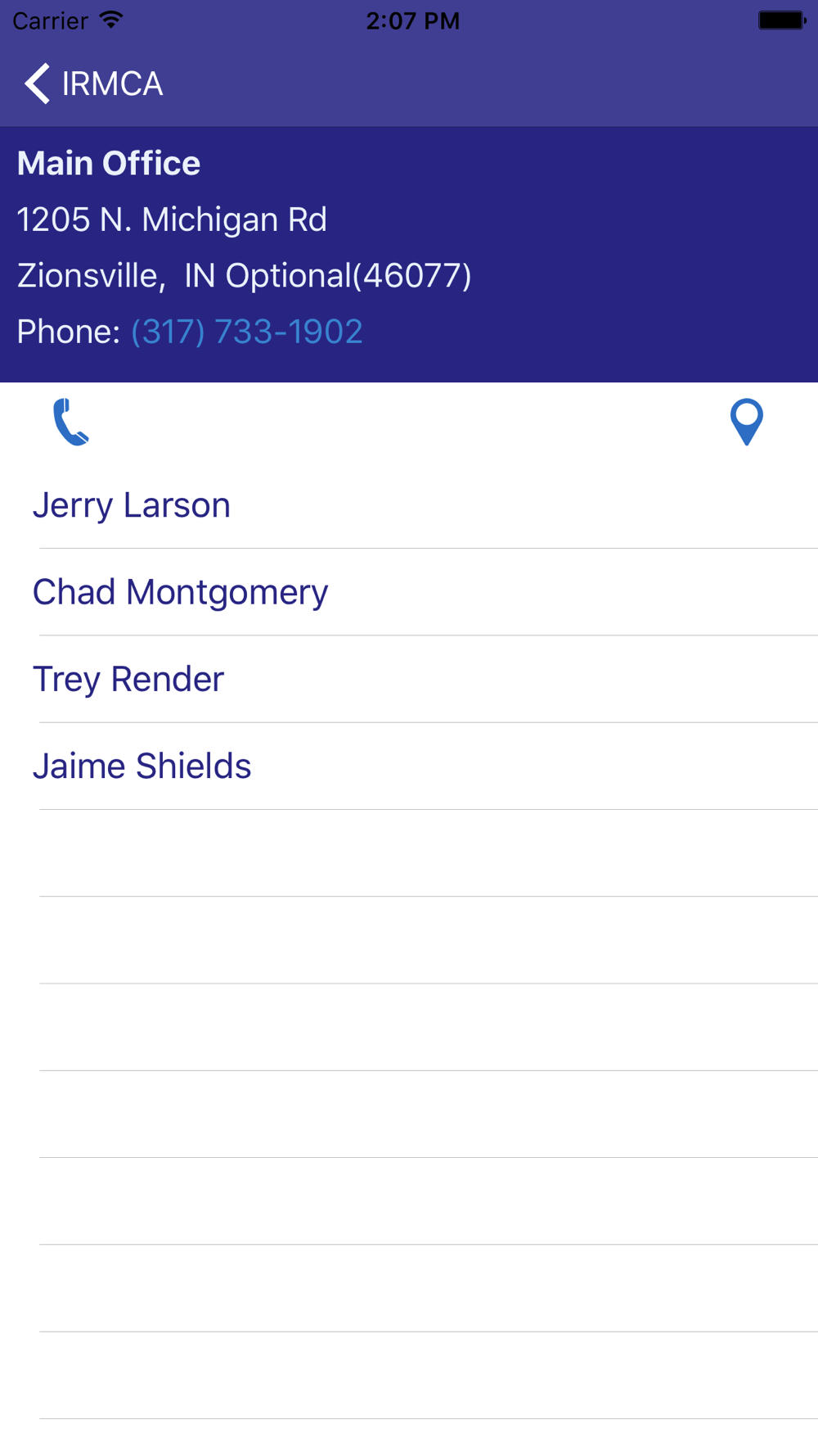 This app is a directory of companies, locations, and contacts of the Indiana Ready Mixed Concrete Association. Search for the location you want to contact and you will be presented with email, phone, fax, and address information, as well as information on specific persons to contact at various locations.