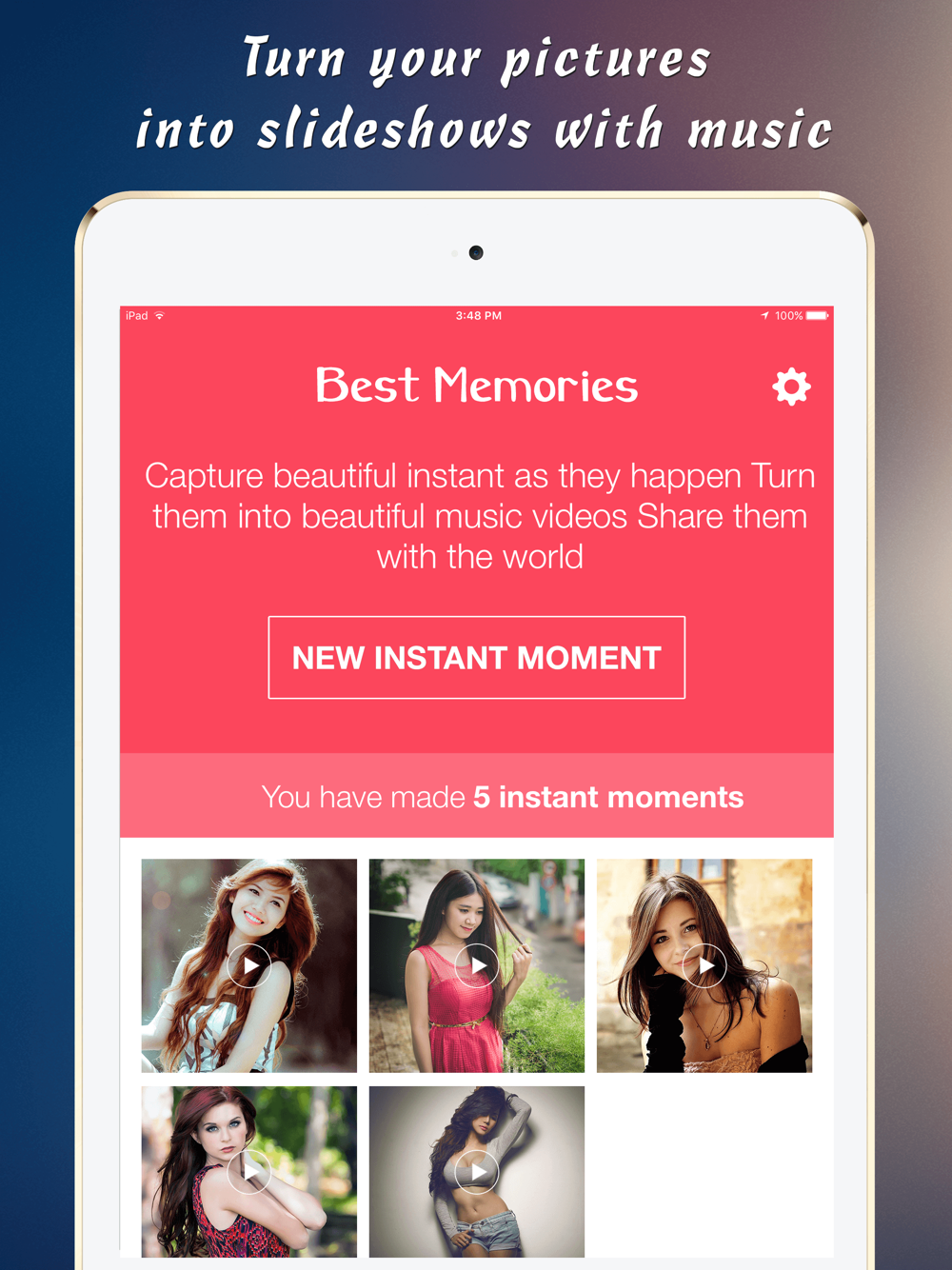 Best Memories App is perfect for capturing pictures when your at a party or a concert and instantly turn them into a video summary with awesome music!