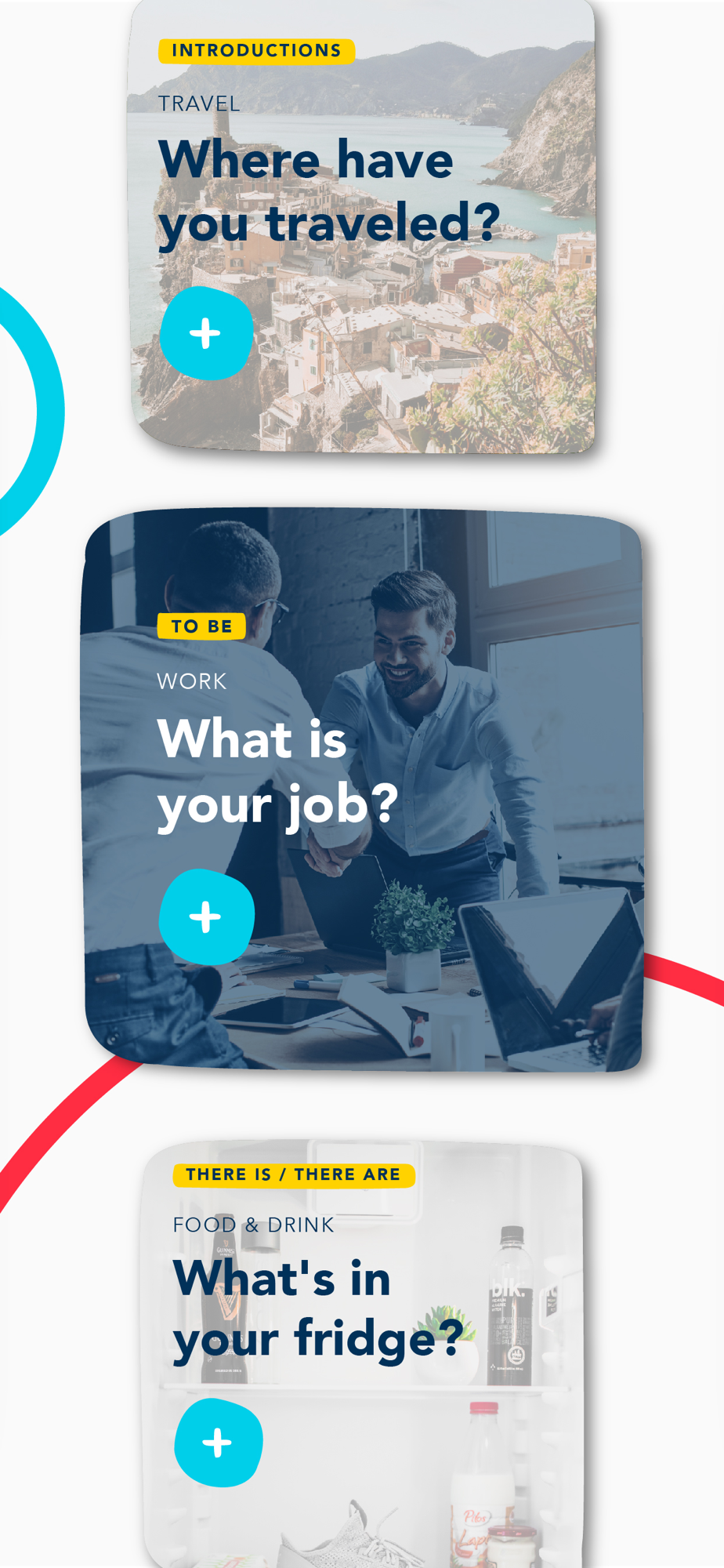 The grammar and vocabulary topics in Say Hello help you talk about everyday life - Friends & Family, Home, Work, Places Around The World - so that you actually enjoy practicing English and learn the phrases that are most useful and relevant for you.