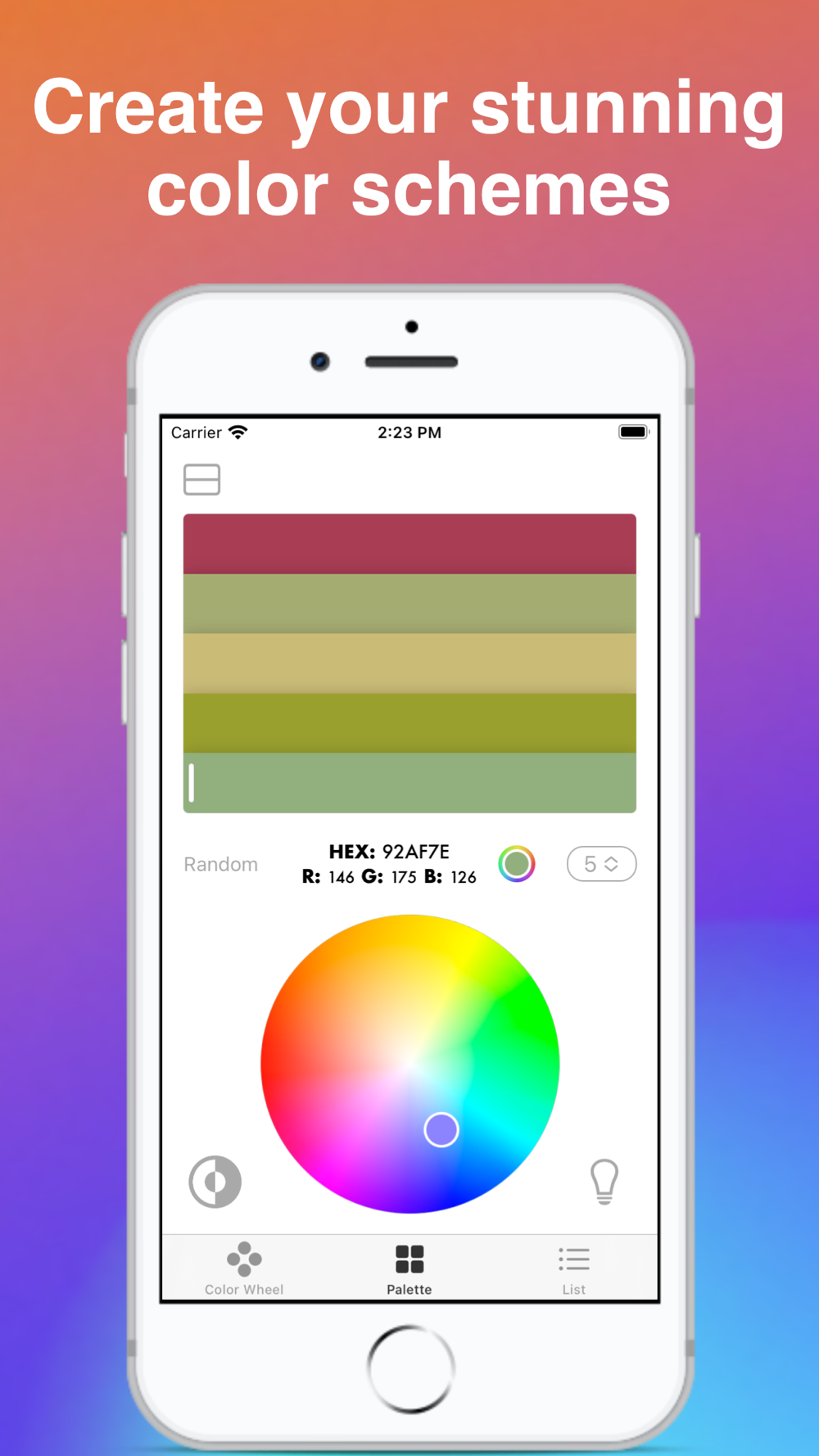 Discover the power of color with the Color Wheel mobile app. With its intuitive interface, you can easily pick the perfect color combination and create stunning color schemes for all your design needs. Whether you're a professional designer or just looking to add a pop of color to your life, the Color Wheel app makes it effortless. Download now and unleash your inner artist!