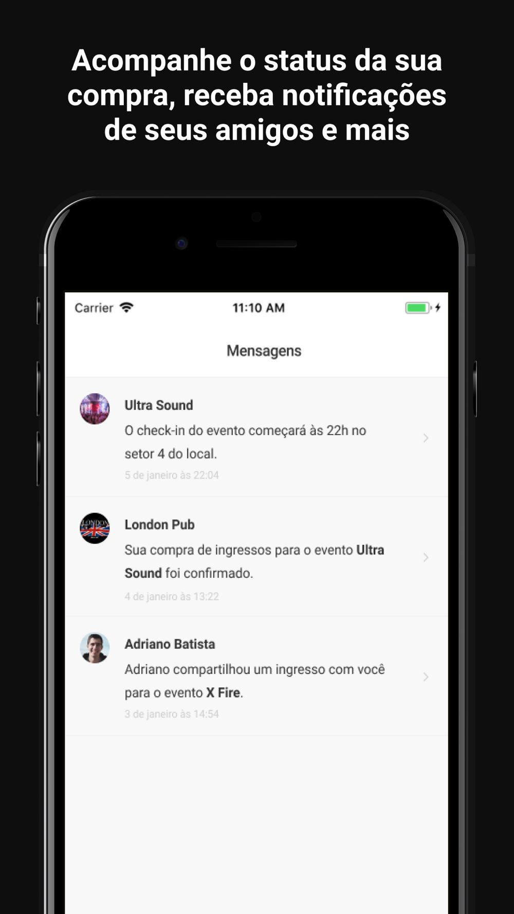 * Ingressos, listas e reservas;