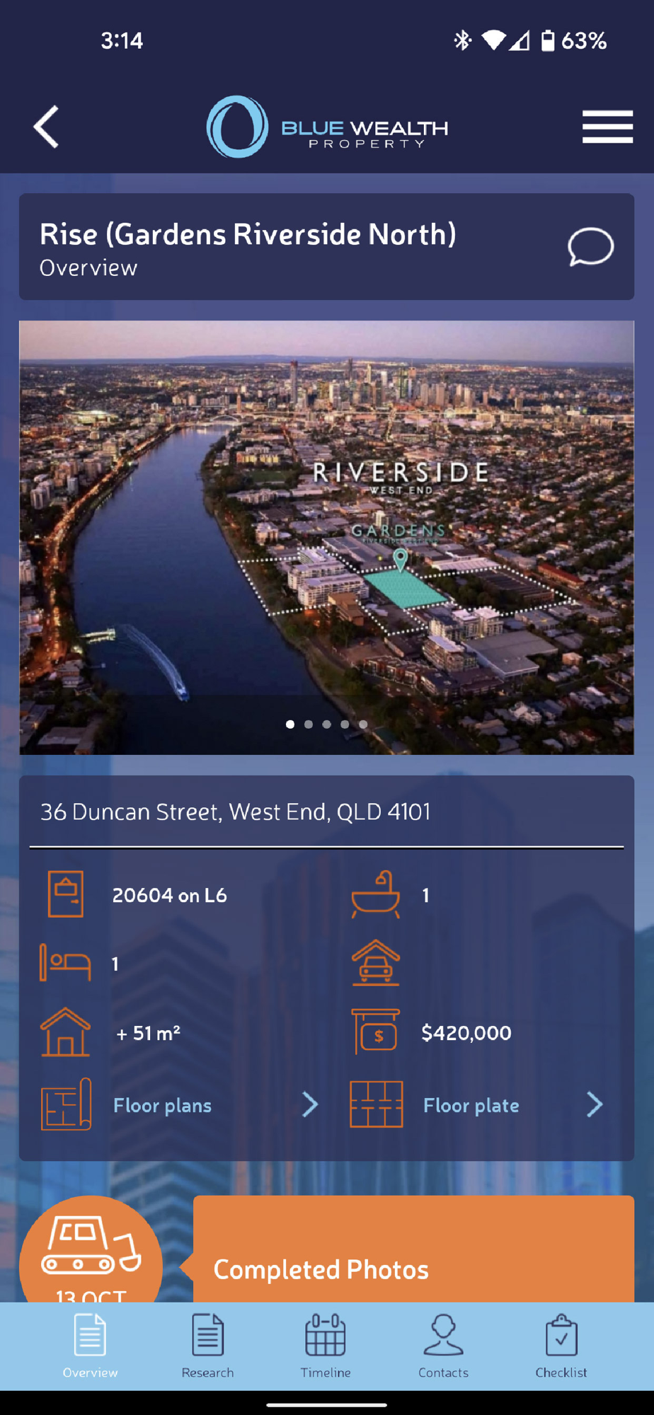 A one-stop shop for our clients to keep track of their research-approved investment property portfolios. It has everything you need for buying a property off the plan, including floor plans, floor plates, all the research, due-diligence reports and more.