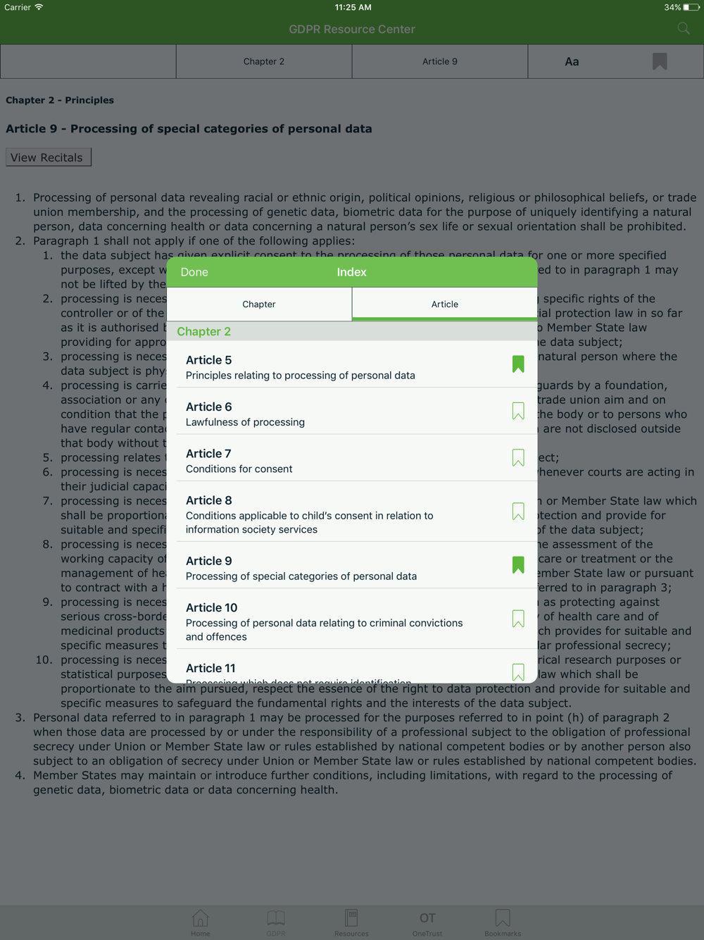 • Ability to bookmark pages for easy reference and search the full GDPR text