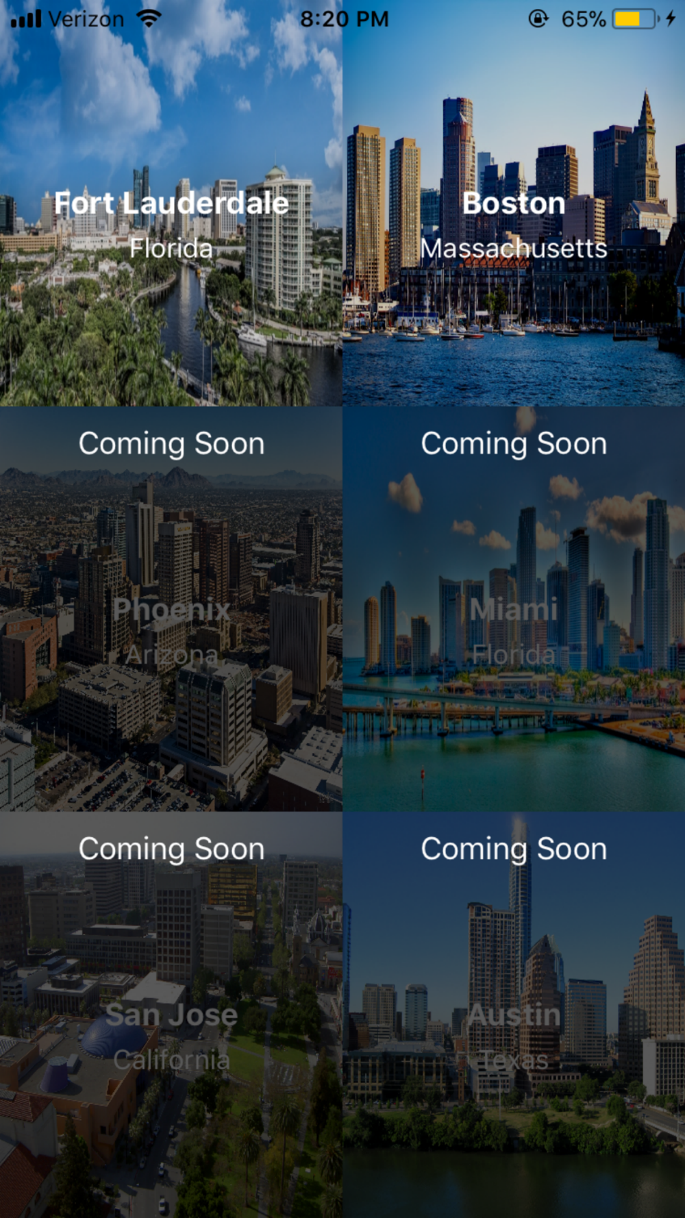 Currently active in Fort Lauderdale and Boston. Phoenix, Austin, San Jose, and Miami coming soon.