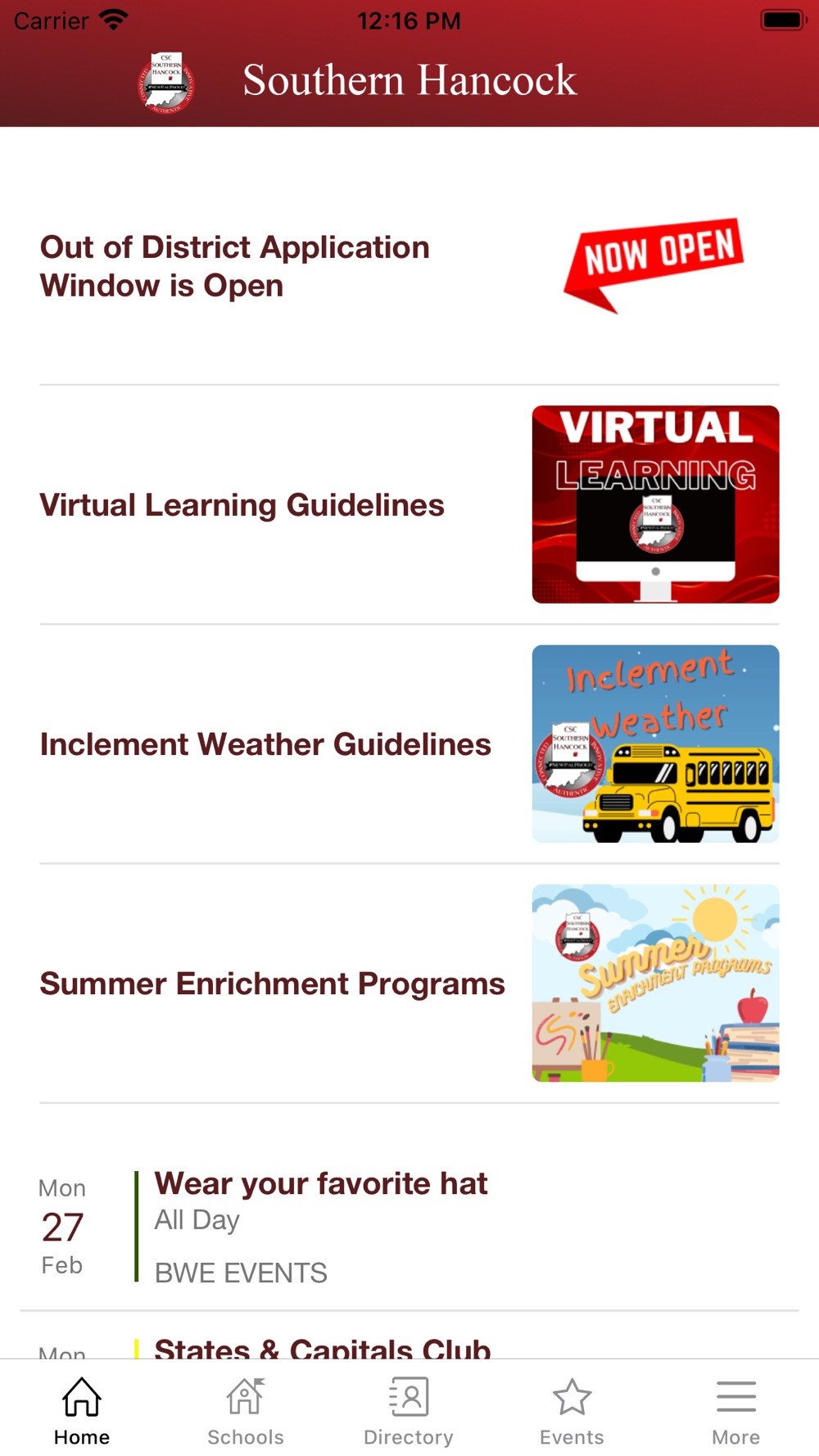 The Southern Hancock app provides parents, students, and faculty members with all the information they need in one place, conveniently accessed and formatted specifically for consumption on their mobile devices.