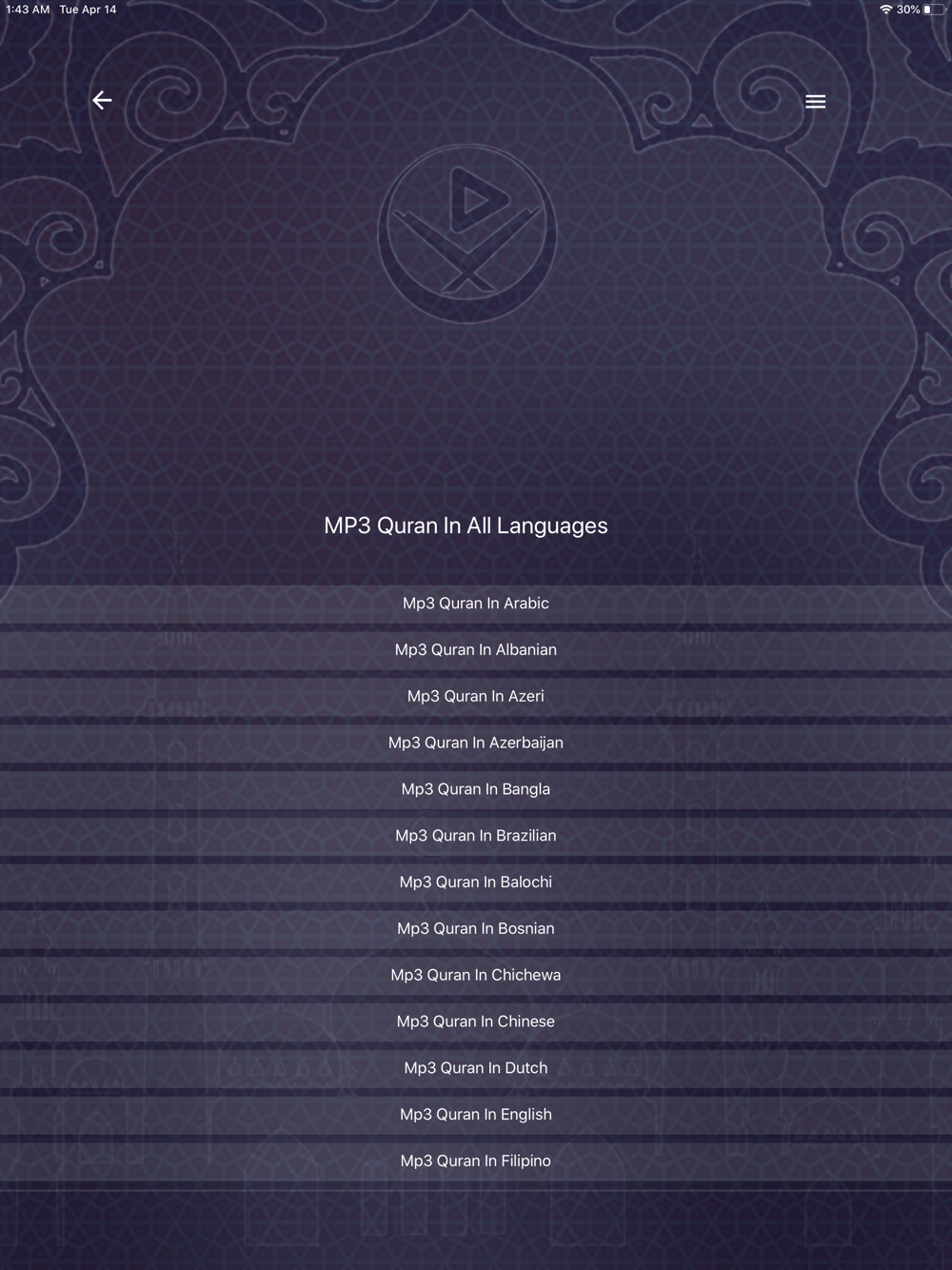 Download and listen Mp3 Quran in all languages like Arabic, Albanian, Azeri, Azerbaijan, Bangla, Brazilian, Burmese, Bosnian, Chichewa, Chinese, Dutch, English, Filipino, French, Gujarati, German, Greek, Hausa, Hindi, Indonesian, Italian, Kashmiri, Kaneda, Kurdish, Korean, Kurdish, Marana, Mexico, Malayalam, Marathi, Punjabi, Pashto, Persian, Portuguese, Russian, Sindhi, Somali, Spanish, Swedish, Tagalog, Tamazight, Tamil, Thai, Turkish, Telugu, Urdu, Uyghur, Uzbek, Vietnamese, Yorba and Zulu, more than fifty five reciters are available for listen online and for download.