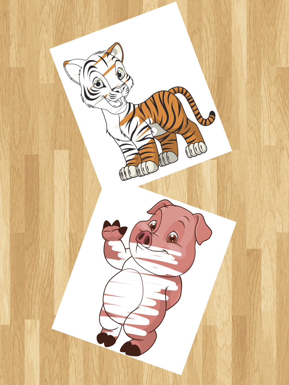 Color, paint or doodle the most beautiful jungle, zoo or farm animals.