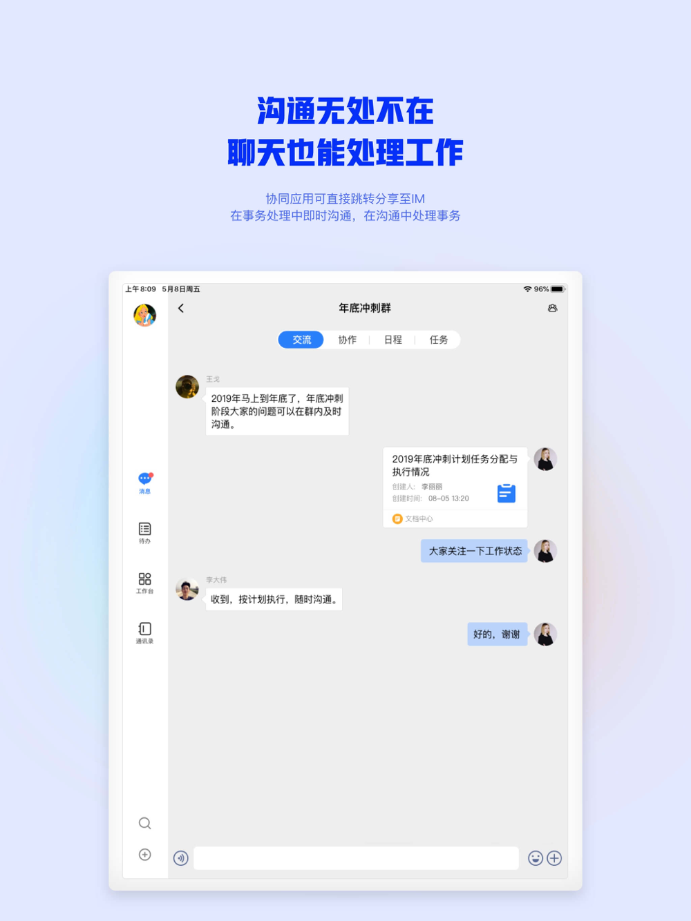 4 The full scene intelligent work platform. Varieties of human-computer interaction mode with the perfect integration with the business system. It realized the intelligent management of the daily work scene of both the staff and managers.