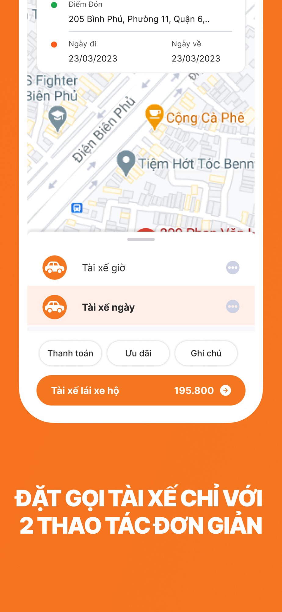 - Đặt gọi tài xế chỉ với 2 thao tác đơn giản