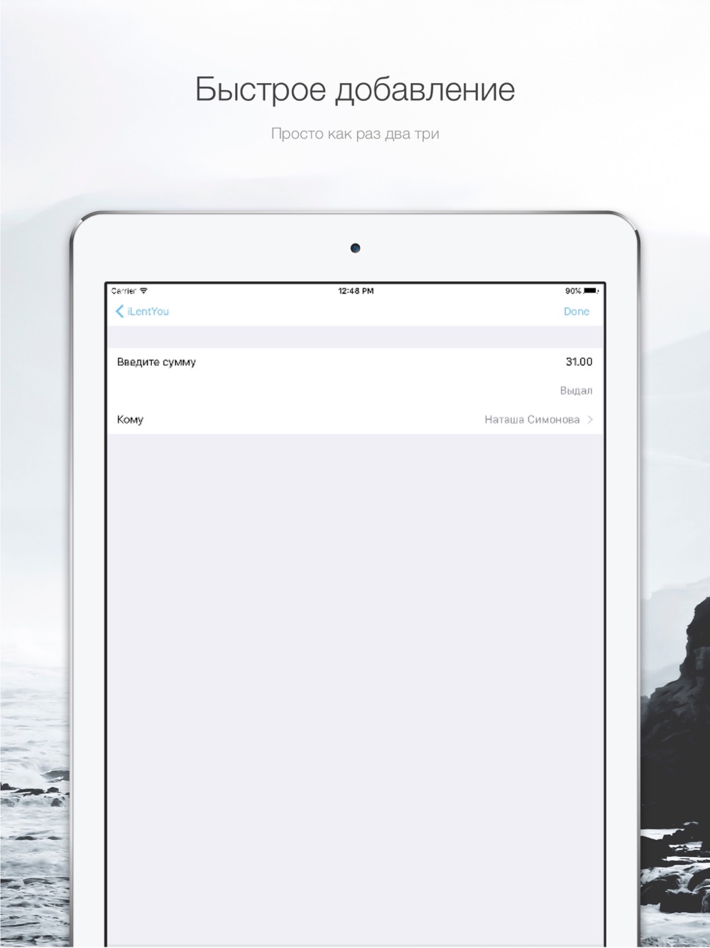 I Lent You - this is a small application that helps to keep records of debts and debtors, with a simple interface that is not loaded with unnecessary features.