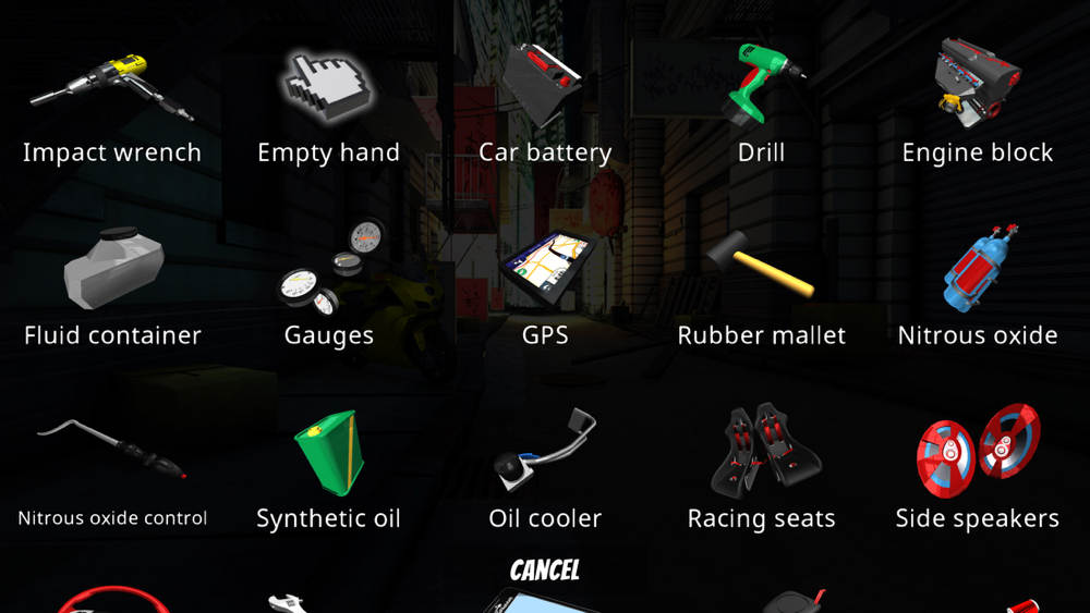 The vehicle you must work with is a stock mess with factory specifications! But it's no match for your amazing mechanical skills. You have access to your garage, and the gang's club, all of which is fully loaded with parts, aftermarket mods and nothing but the best tools!