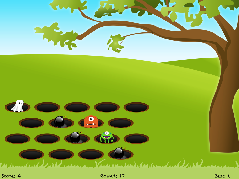 Tap Monster is a fun and addictive iOS App game for everyone. Tap anywhere on screen to start new game. Whack popup monster to score points. Hit bomb will end the game. Try to score points as much as you can. Have fun!