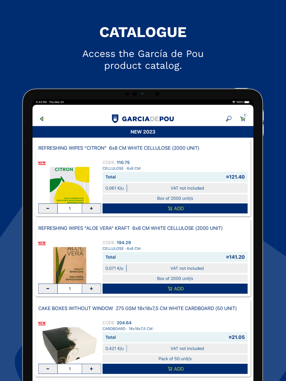 With the GARCIA DE POU APP you can access our extensive catalogue and make purchases comfortably from your mobile: