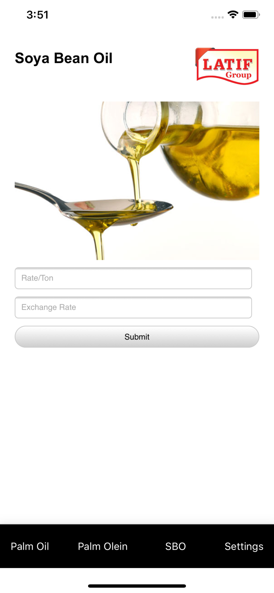 Latif group being the renowned manufacturers of Latif Banaspati & Cooking oil now launches application to calculate the edible oil landed costs for Pakistan. This app allows you to calculate CnF rates for Palm Oil, Palm Olein, and Soya Bean Oil for Pakistan.
