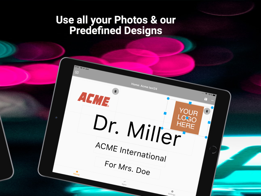 Design your welcome signs in minutes with best readability. Ideal for chauffeurs, taxi drivers and group tours to find and pick up your passengers easily.