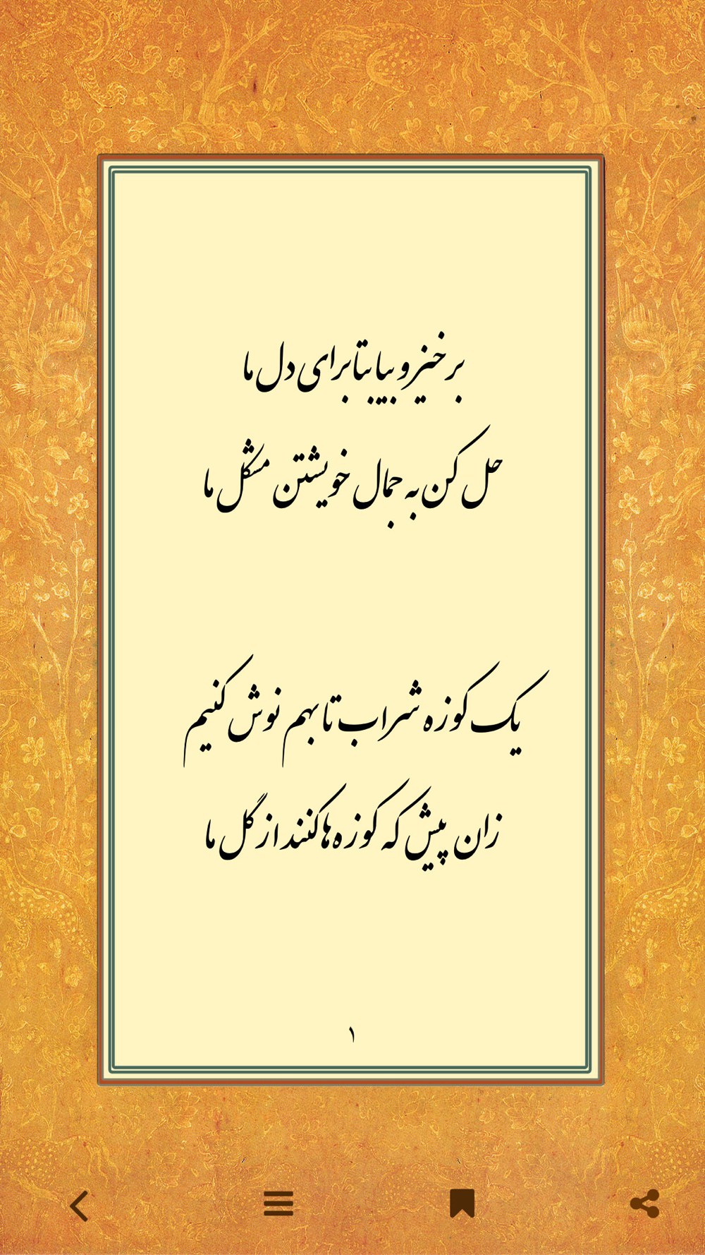 Delve into the enchanting world of Omar Khayyam with the "Rubaiyat of Khayyam" app, a delightful blend of literature and art for your iPhone and iPad. This beautifully designed app not only presents Khayyam's timeless Persian poems in three languages—Persian, English, and French—but also immerses you in the rich Persian culture through stunning 3D Parallax visuals and traditional music. Enhance your reading experience with interactive features like poem search, bookmarking, and easy sharing, all while enjoying the depth of Persian paintings that accompany each verse. Whether you're a long-time admirer of Khayyam or a newcomer to his work, this app promises a unique and mesmerizing experience of Persian poetry and art.