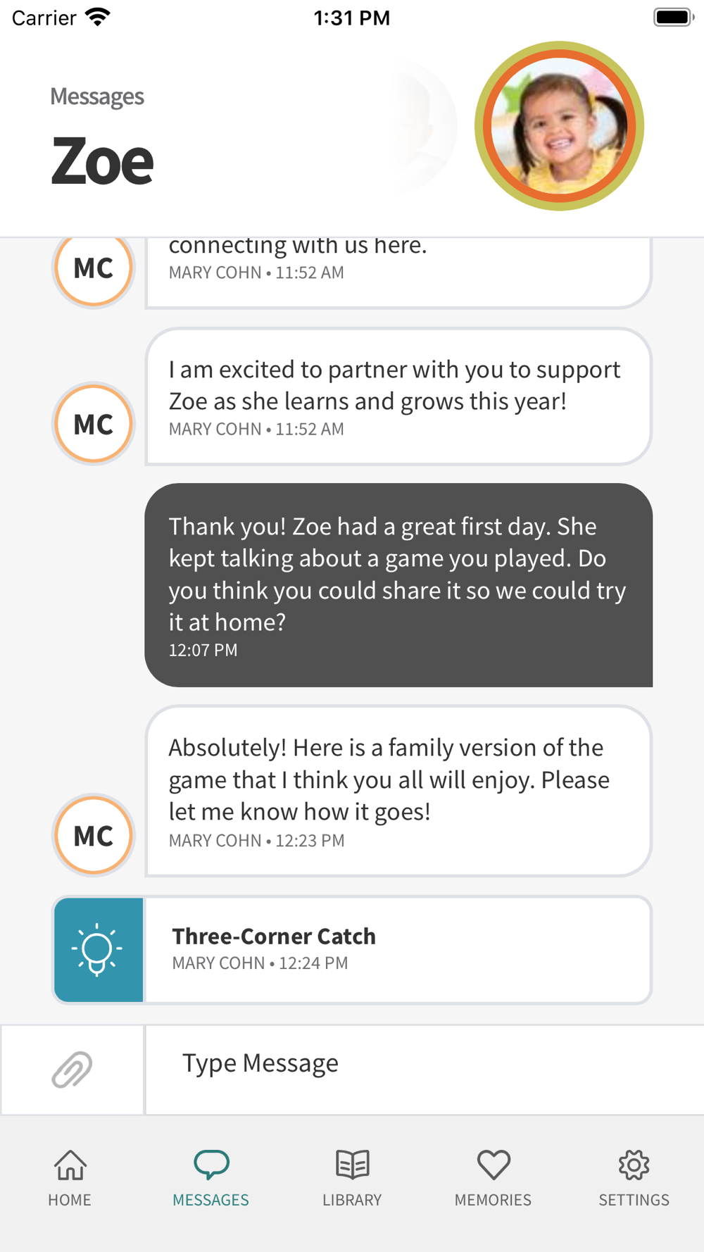 * receive and share videos, photos, and resources from your child’s teacher that connect to classroom experiences;