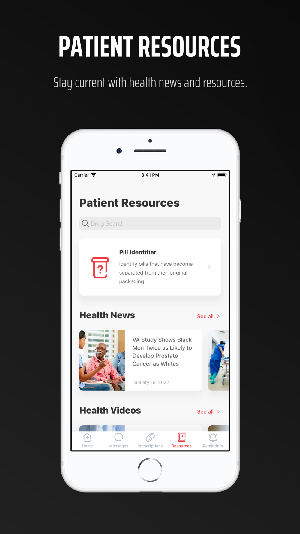 All new app with enhanced features! Some of the new features include medication reminders, biometric login through the use of FaceID/TouchID and messaging. No need to re-register, your existing login works!