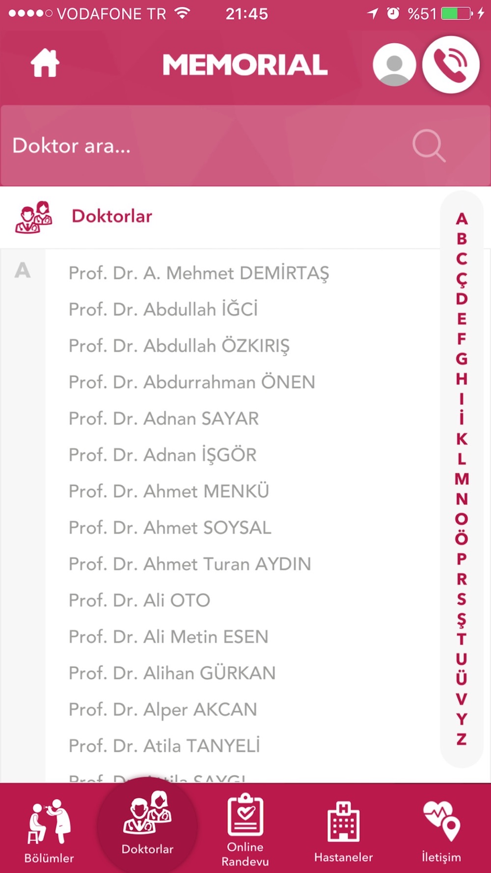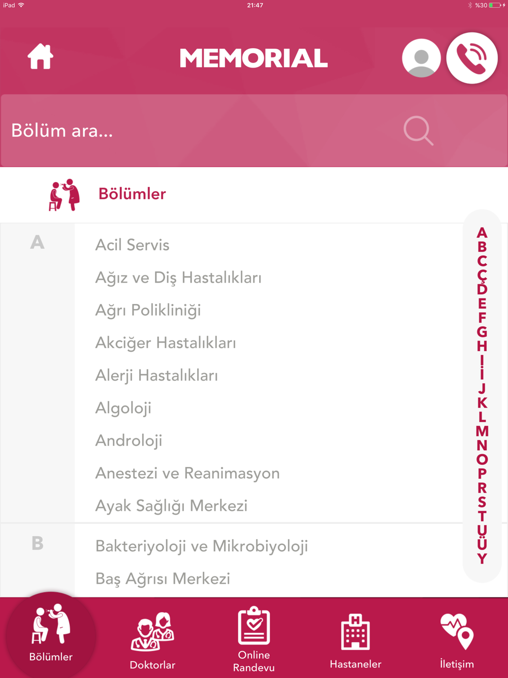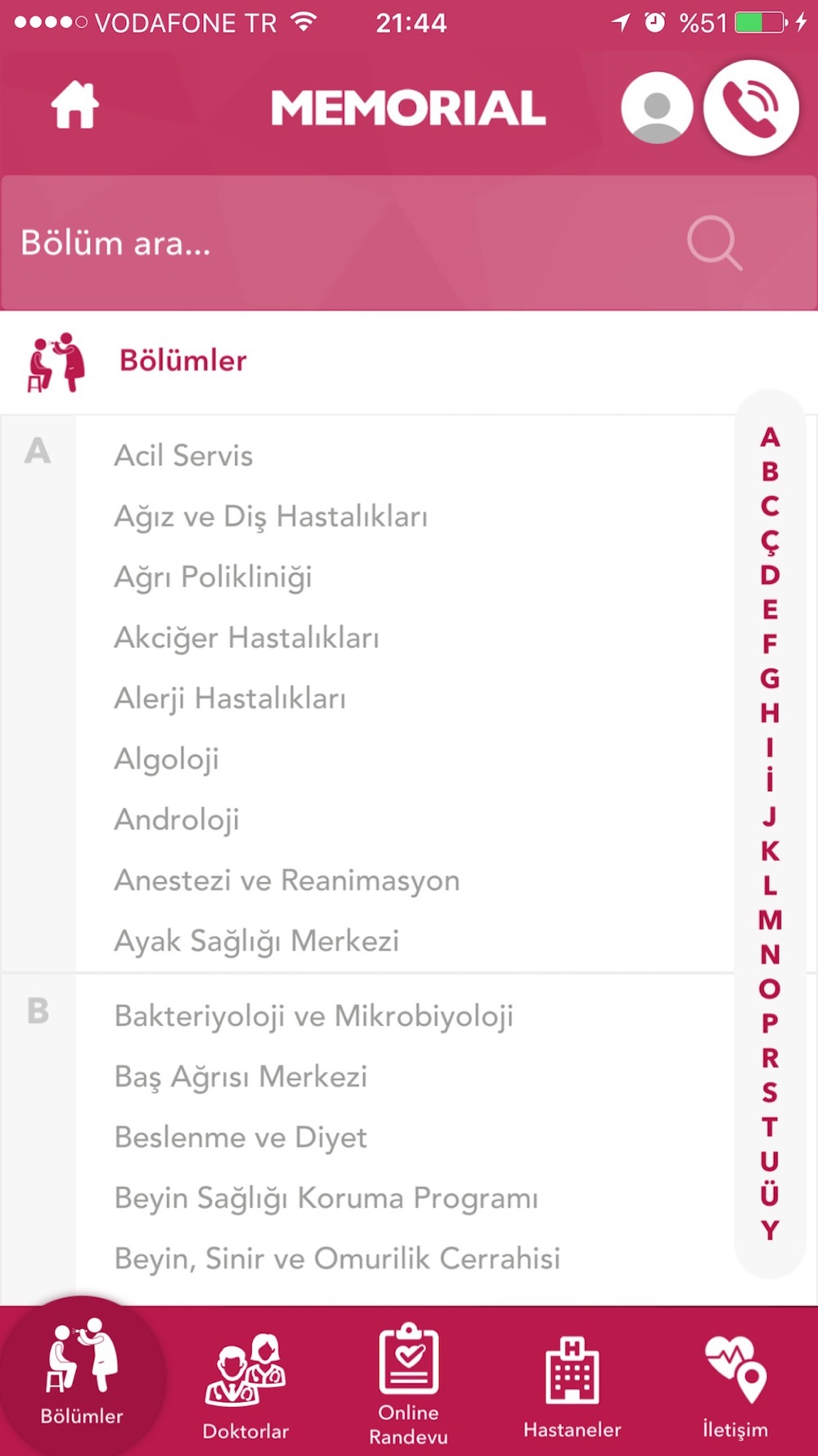 - Memorial Sağlık Grubu bünyesindeki hastane, bölüm ve doktor bilgilerini görebilirsiniz.