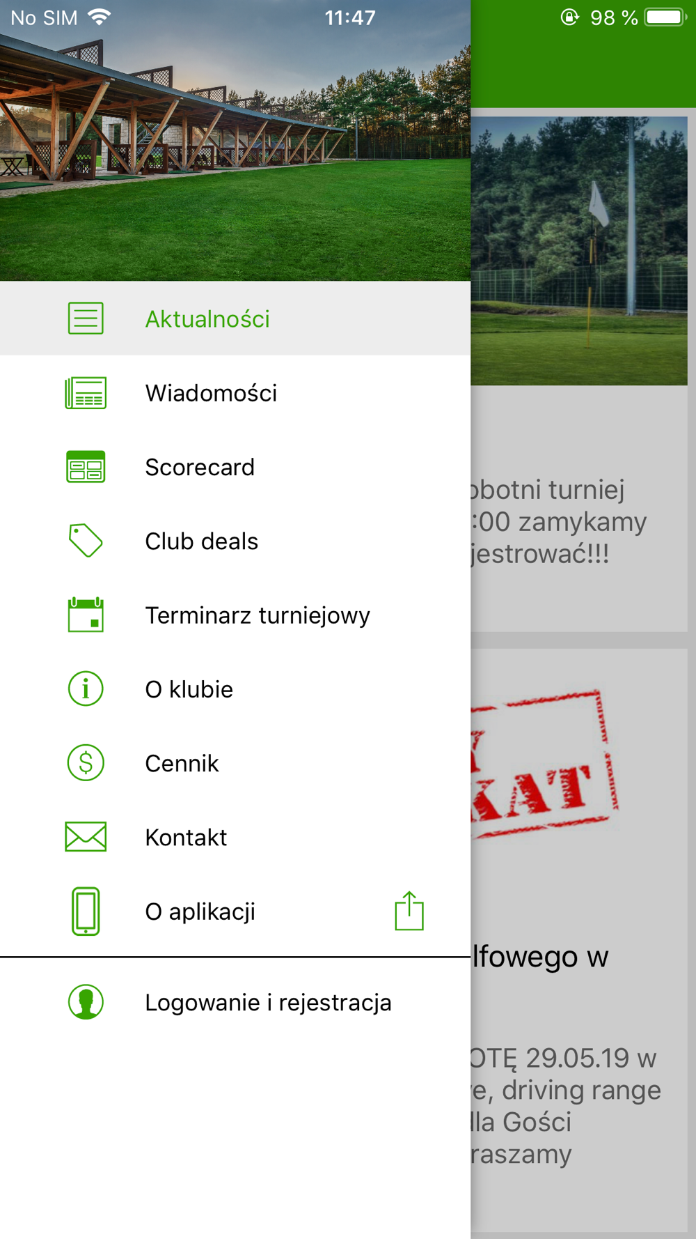 - przeglądaj, zapisuj się i opłacaj turnieje odbywające się na naszym polu