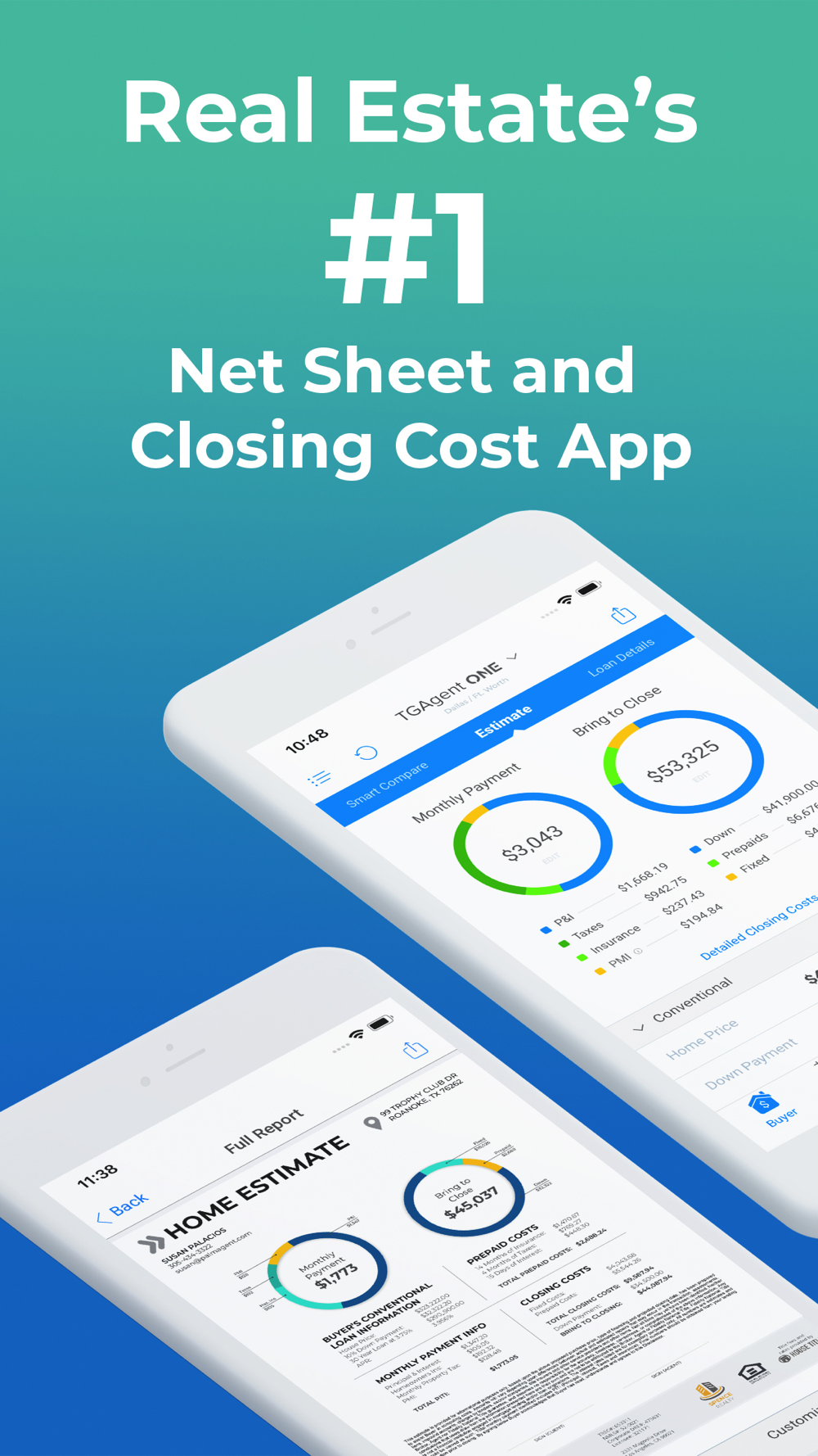 TGAgent ONE is City/County Specific Closing Cost Software that comes preloaded with calculations and closing costs for Real Estate Professionals. It allows them to easily and quickly generate Buyer Estimates and Seller Net Sheets from their iPhone and iPad. TGAgent ONE also allows the user to fully customize email/printouts for their clients.