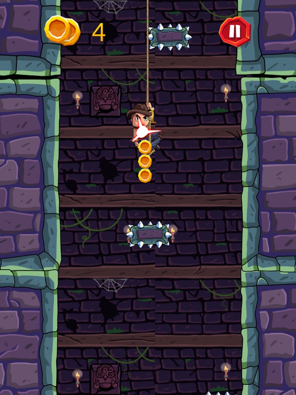 Timing and precision is the key to play this game. Try to reach down the well as deep as you can and collect all the gold and jewels to unlock the new characters. React fast, slide quickly. You have to press and hold to make the character slide down the rope. Challenge your friends to see how deep the rabbit hole goes.