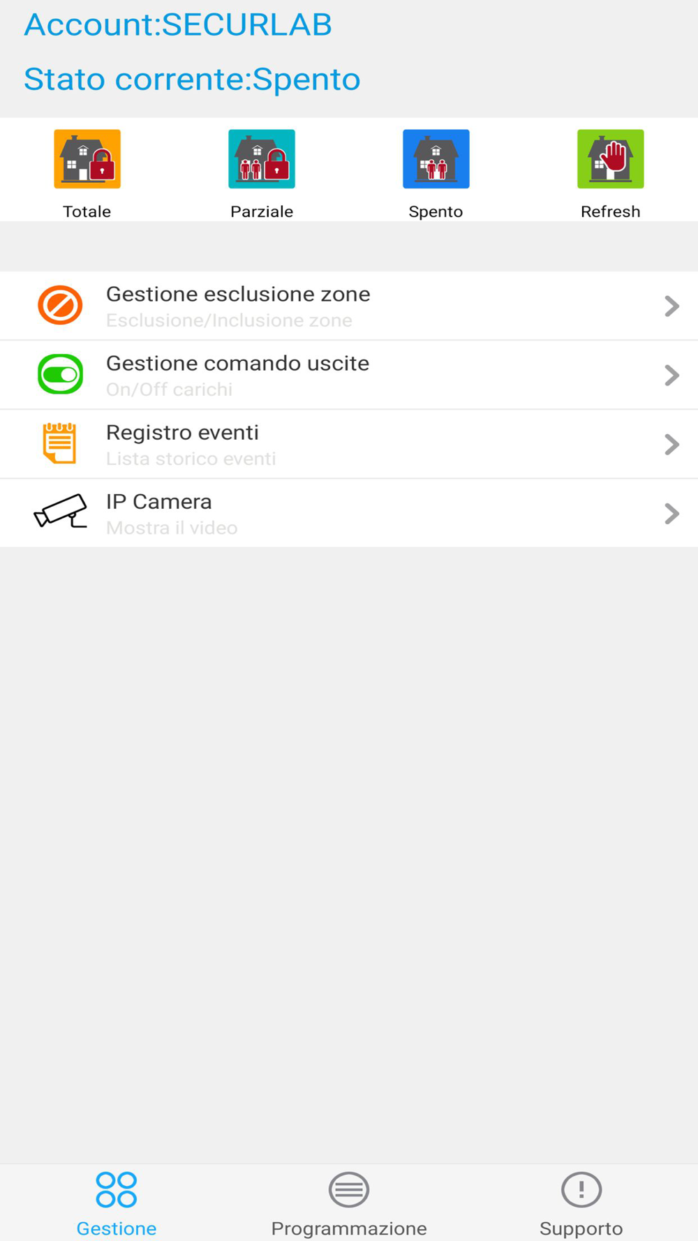 Con l'App Securlab Plus non è necessario recarsi sul pannello di centrale per eseguire programmazioni, consultare la memoria eventi, memorizzare e cancellare le zone radio, comandare uscite e visionare le telecamere. L'App Securlab Plus può memorizzare illimitati profili di centrali Securlab.