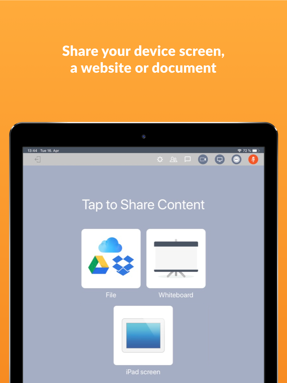 • Brainstorm together using the on-screen highlighter and whiteboard (iPad only)