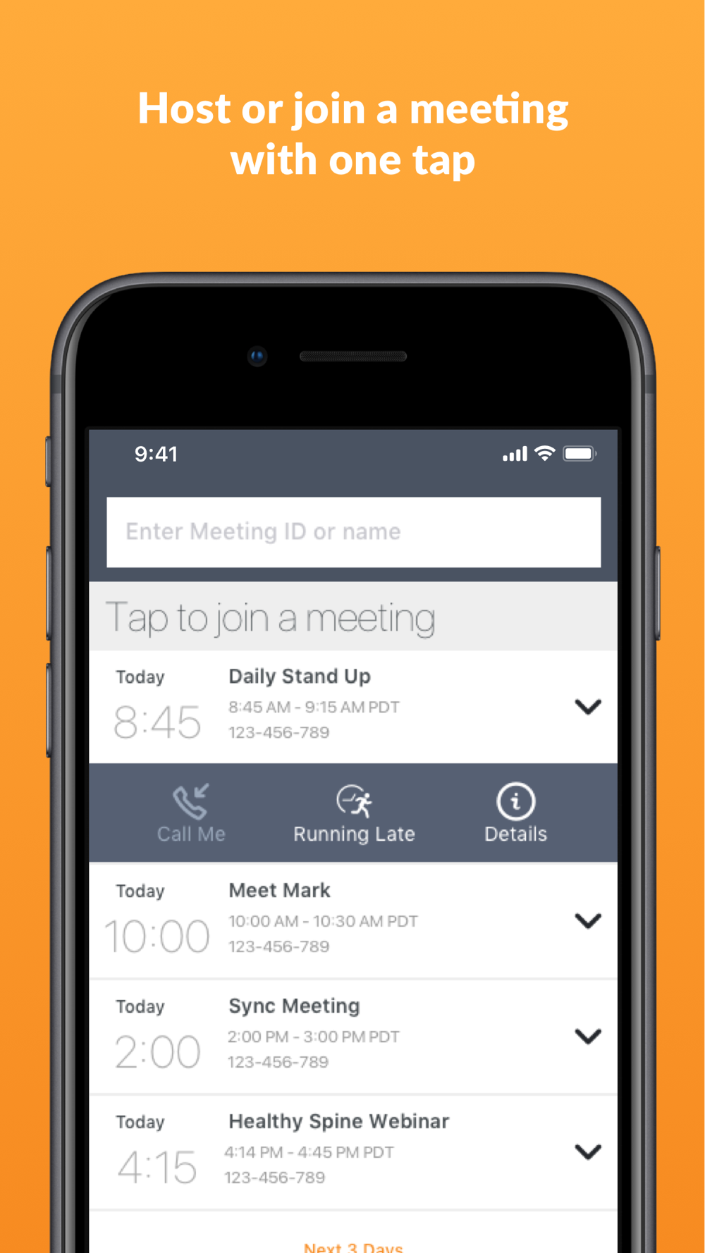 • Sync your calendar to your mobile device to join meetings with a single tap.
