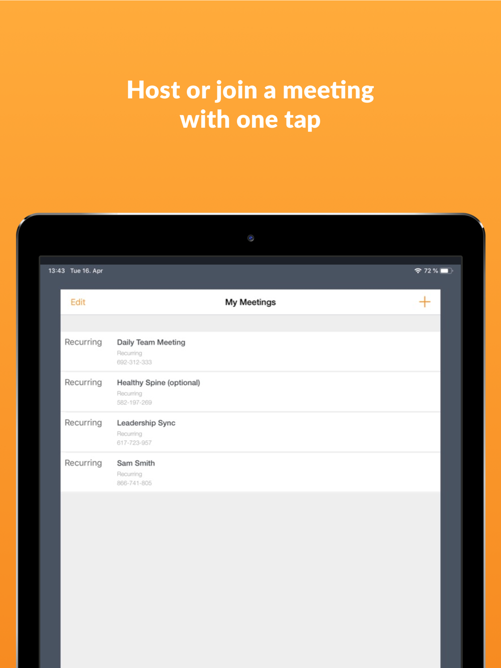 • Start your meeting with one tap and then seamlessly transfer the session to your Mac (or vice versa)