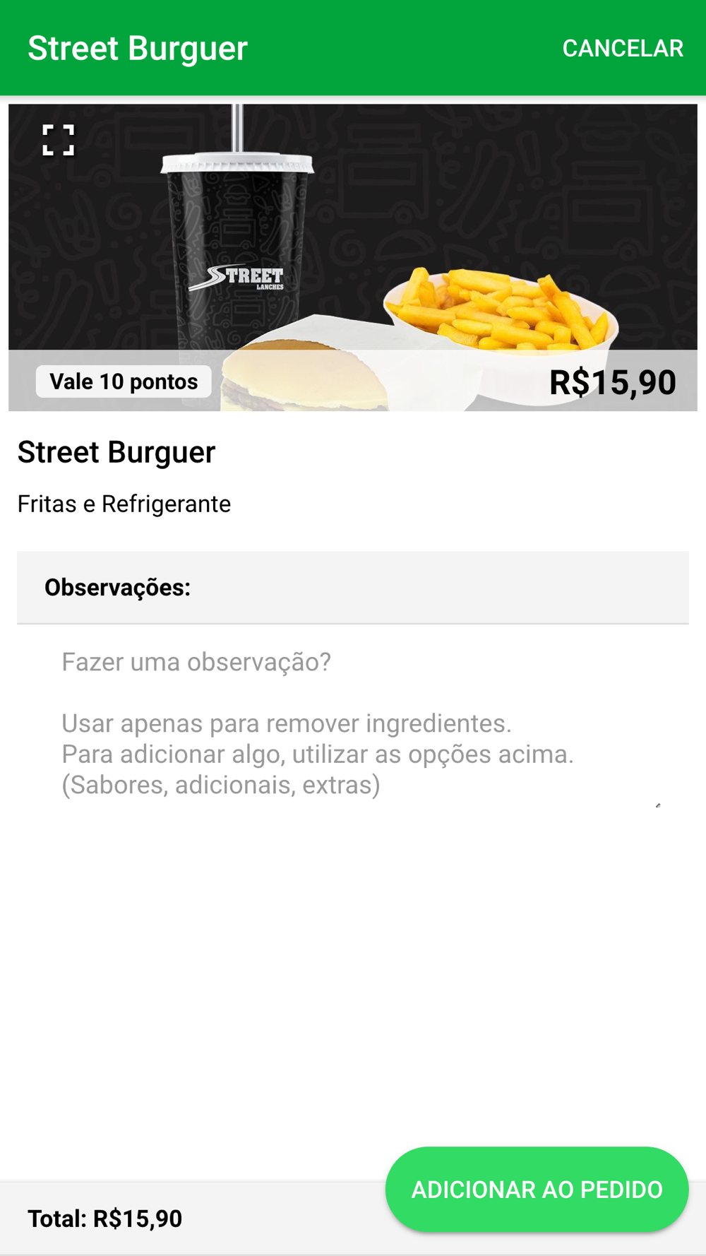 Aplicativo de pedidos online do Street Lanches de São João Batista.