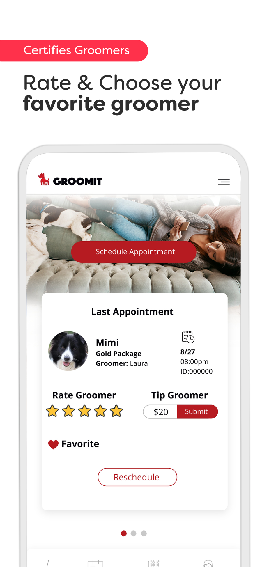 Groomit Marketplace will match your pet with a local pet stylist: instant Booking & Same-Day Availability. Our Mobile & In-Home Pet Grooming app has got you covered! This mobile pet salon on wheels app allows you to book top-notch pet grooming services at your fingertips conveniently. Bring the pet spa into your home with our easy-to-use pet grooming services app. Select from a variety of haircut and bathing packages. Finally, less stress for you and your pet!