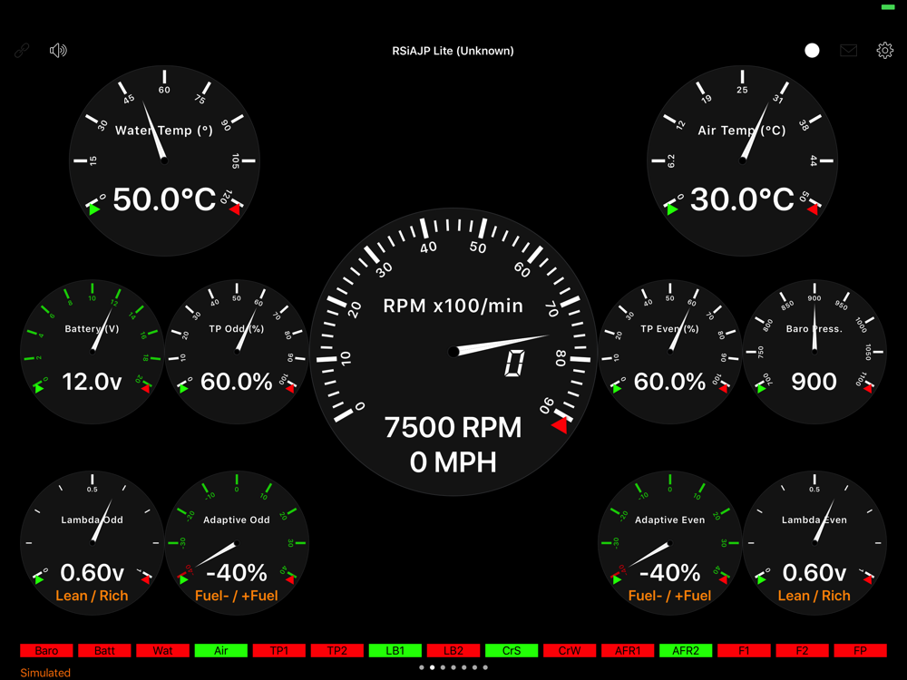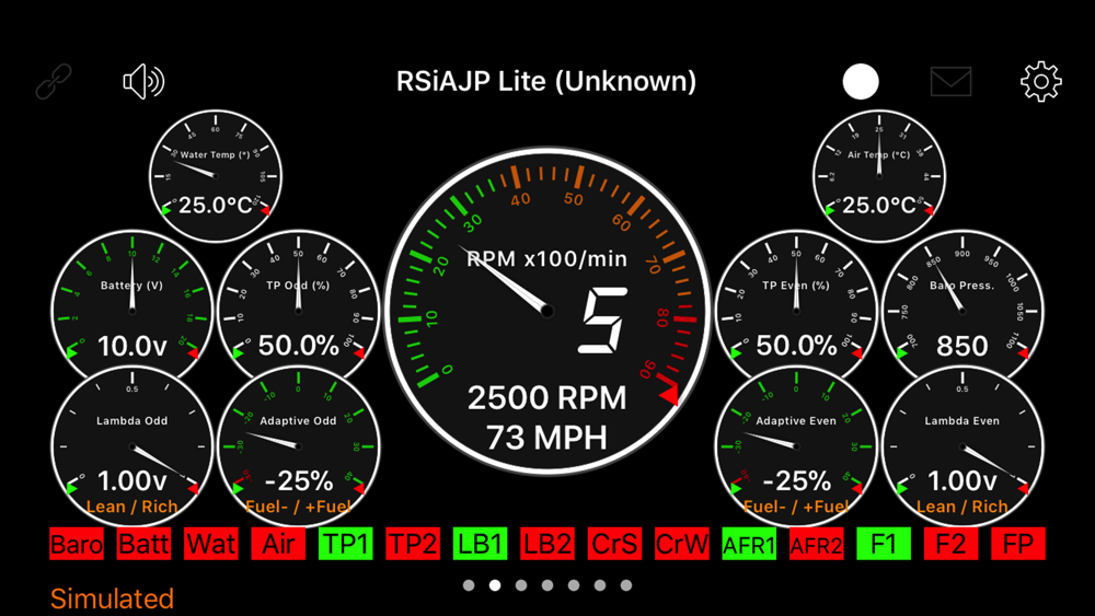 This version of the app displays RPM and Speed in real time. All other data is simulated.