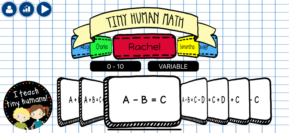Tiny Human Math is a fun way for your child to practice finding missing numbers in addition and subtraction equations. There are several different levels of play depending on the skills your child is learning. This allows for individual differentiation across several grade levels.