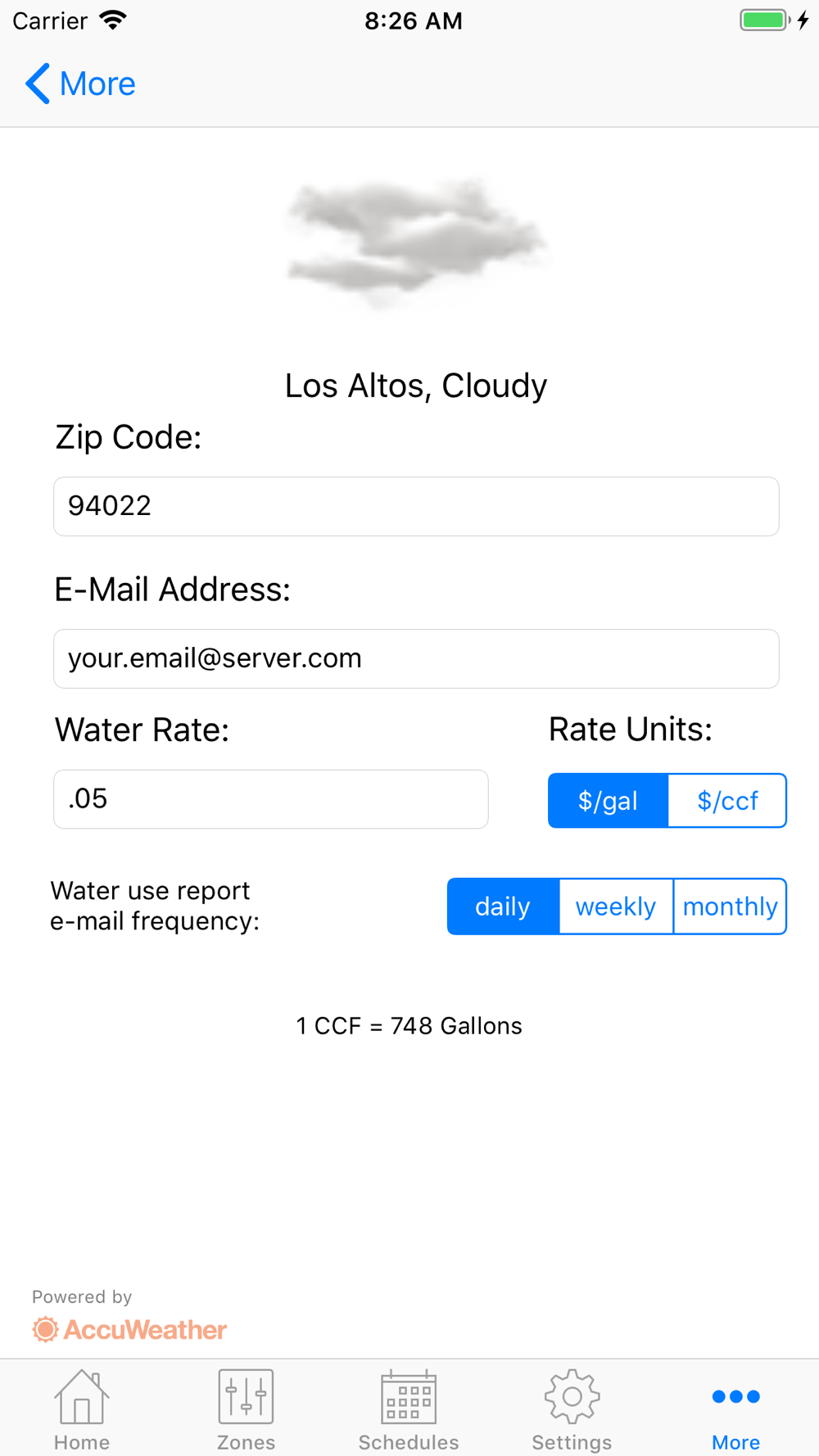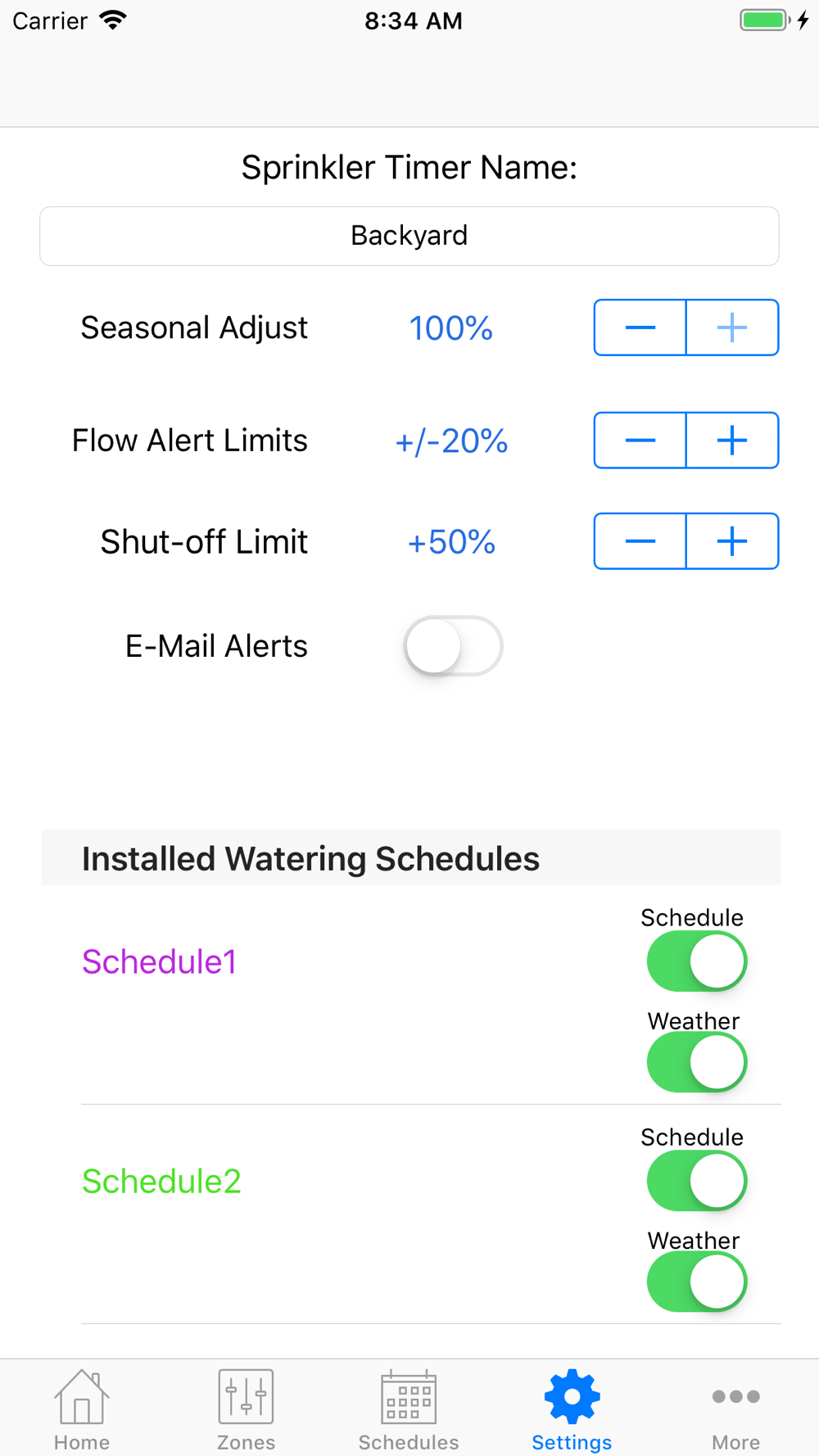 H2OPro manages the H2OPro WiFi-Enabled Smart Sprinkler Timer. Use your iPhone to easily create watering schedules, track water use, and receive e-mail alerts when leaky or clogged water lines are detected.