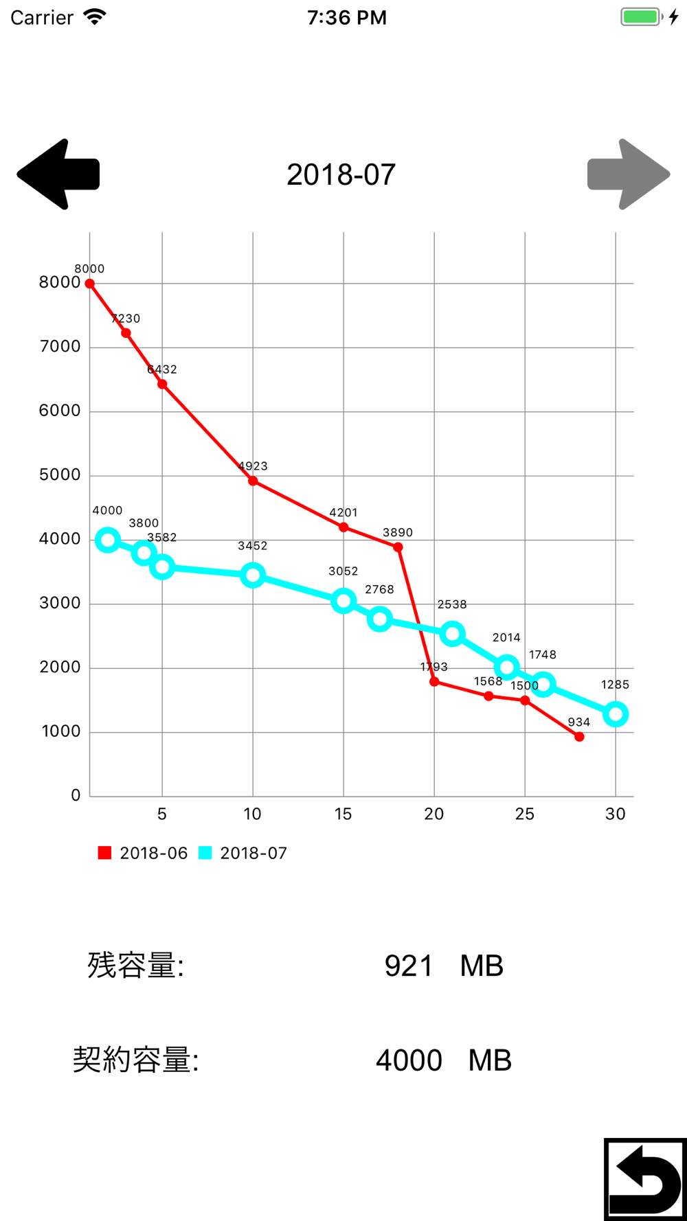 このアプリで通信残量を確認すれば、過去の履歴とともにグラフで表示されるため、今月末までにどれだけ残量が残りそうかなど簡単に予想できます。