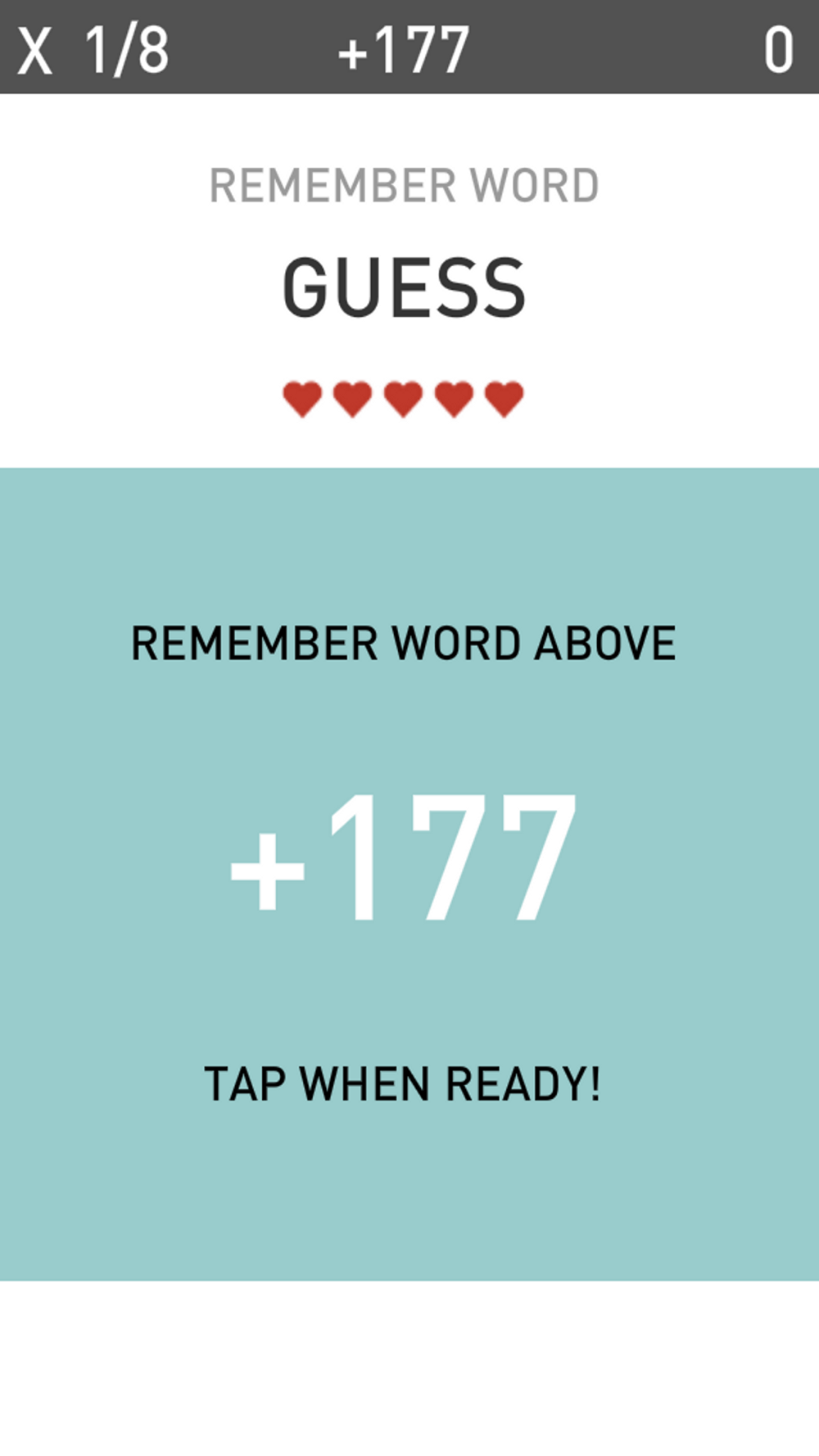 How to play: There will be shown a word on the screen, try to remember it as fast as possible and tap when ready (watch out, your points are already running). Then the word will be hidden. Try to answer all 3 questions regarding the word previously shown. Faster you answer the questions, the better score you get! You have 180 seconds for each round and there will be 8 rounds in each game. Watch out, you can make max 5 mistakes, otherwise the game ends. Submit your score at the end of the game and review score of other people to see who is the best!