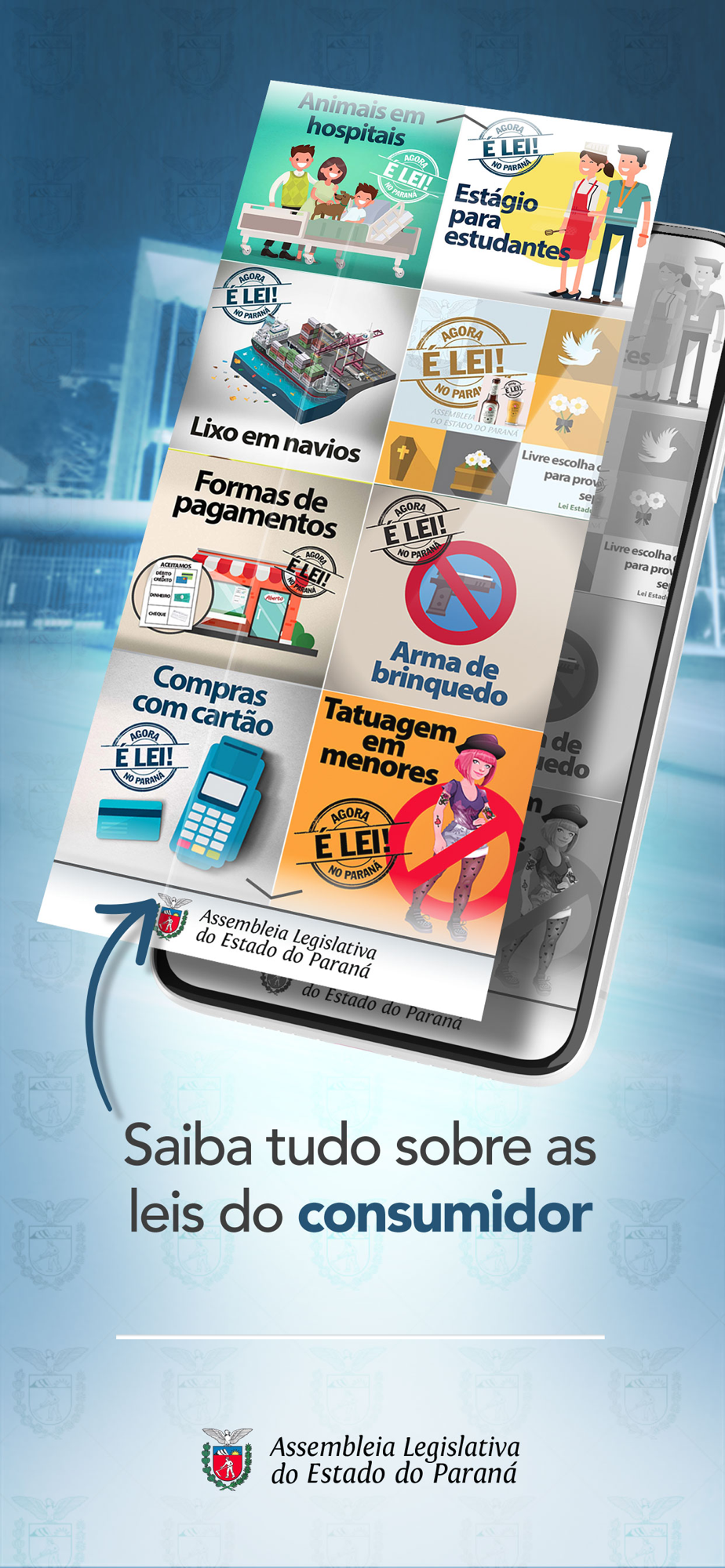 A Assembleia Legislativa do Paraná criou em 2017 o aplicativo “Agora é Lei no Paraná”, uma ferramenta de comunicação para ajudar o consumidor a conhecer as leis e cobrar seus direitos.