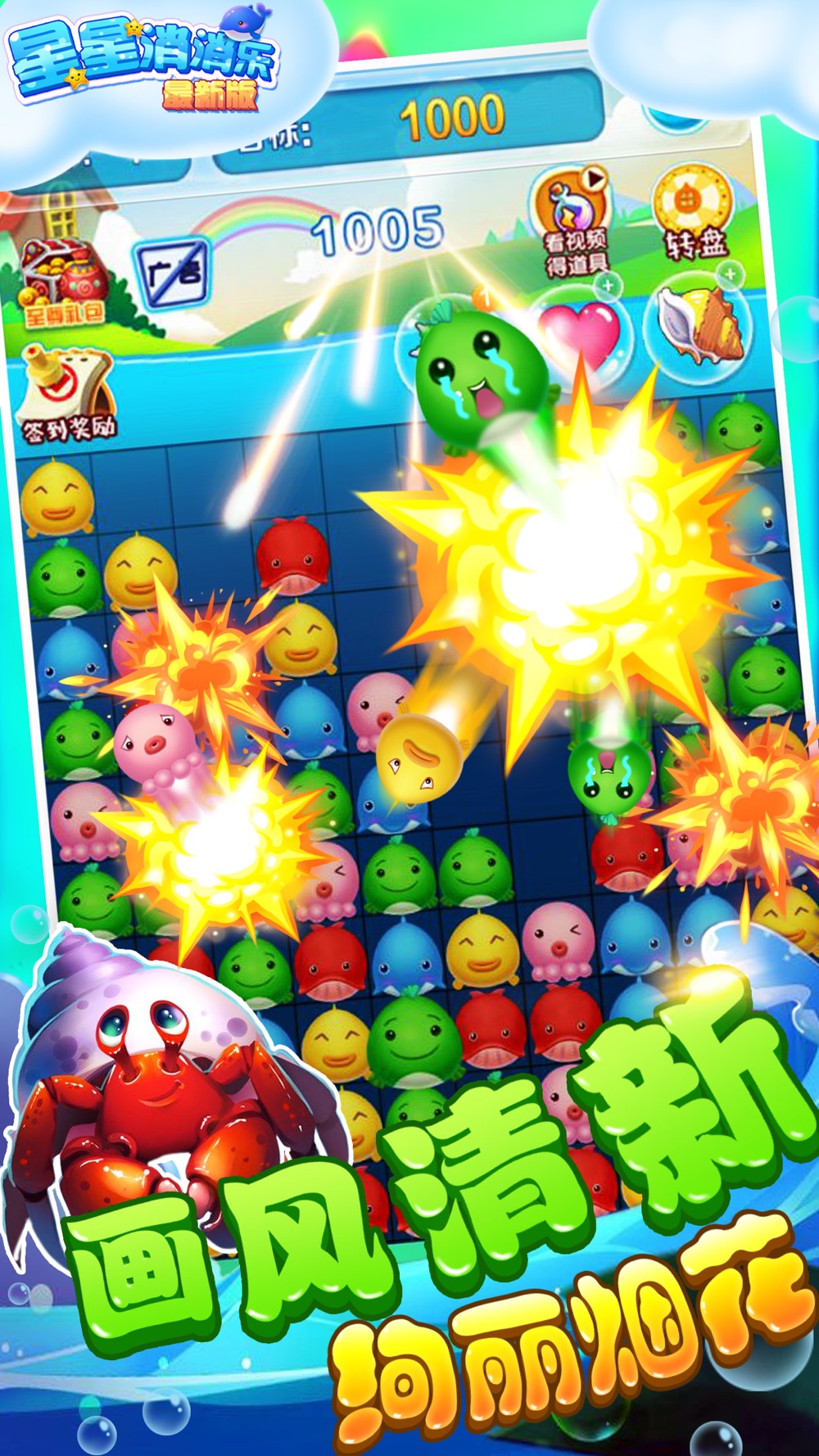 规则超简单,找到并消除两个以上的相同的小鱼,相连的小鱼越多,得分越高。你也可以尽量让所有的小鱼被消除,会有更多得分。
