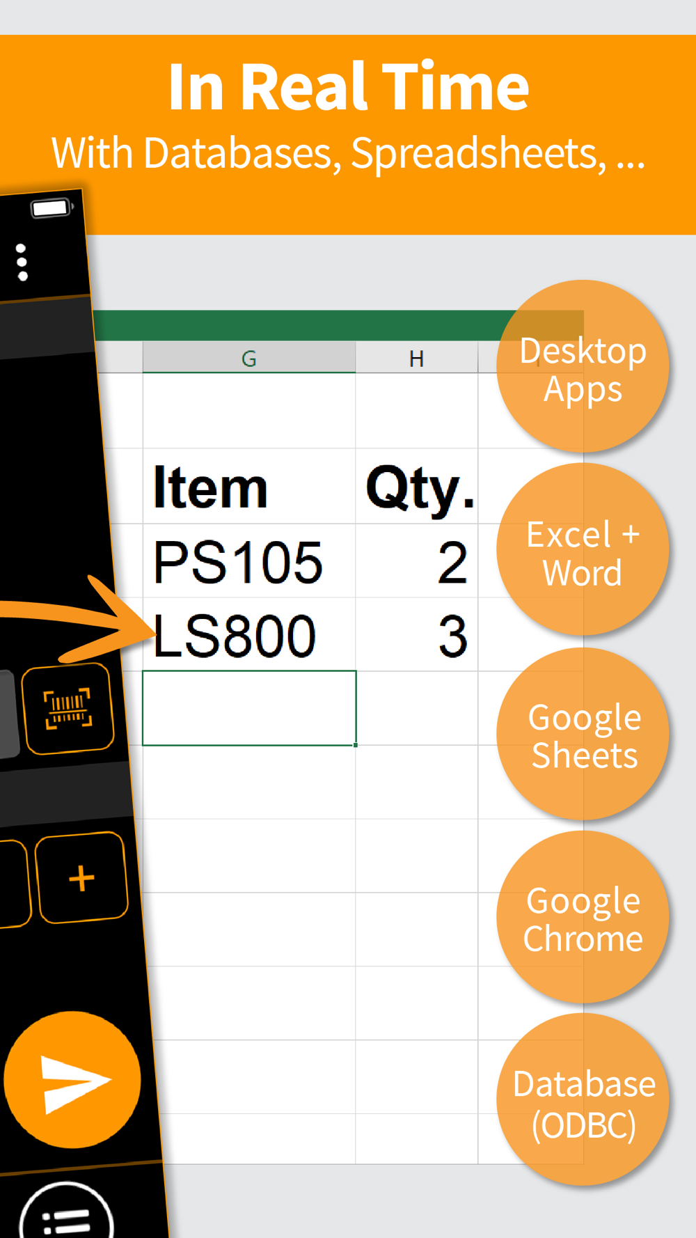 Scan-IT to Office is the efficient solution for mobile data acquisition with real-time connectivity to arbitrary PC or Mac applications and databases accessible via ODBC - with enhanced support for Microsoft Excel, Microsoft Word, Google Sheets and Google Chrome. Captured data like barcodes, NFC tags, texts, numbers, locations or images is transferred via cloud services immediately to targets on your desktop computer. This works regardless of your location, even across different offices, facilities or countries.