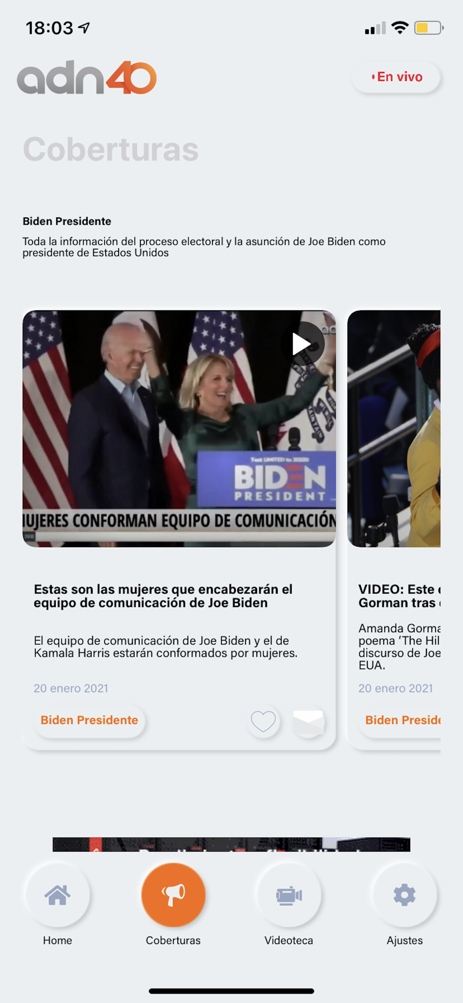 La información de ida y vuelta ahora disponible para iPad, iPhone y iPod Touch. Construye con nosotros la información y entérate de lo más relevante de poder, internacional, México, finanzas y más. Sigue la cobertura de nuestros programas y se parte de la verdad compartida de ADN 40.