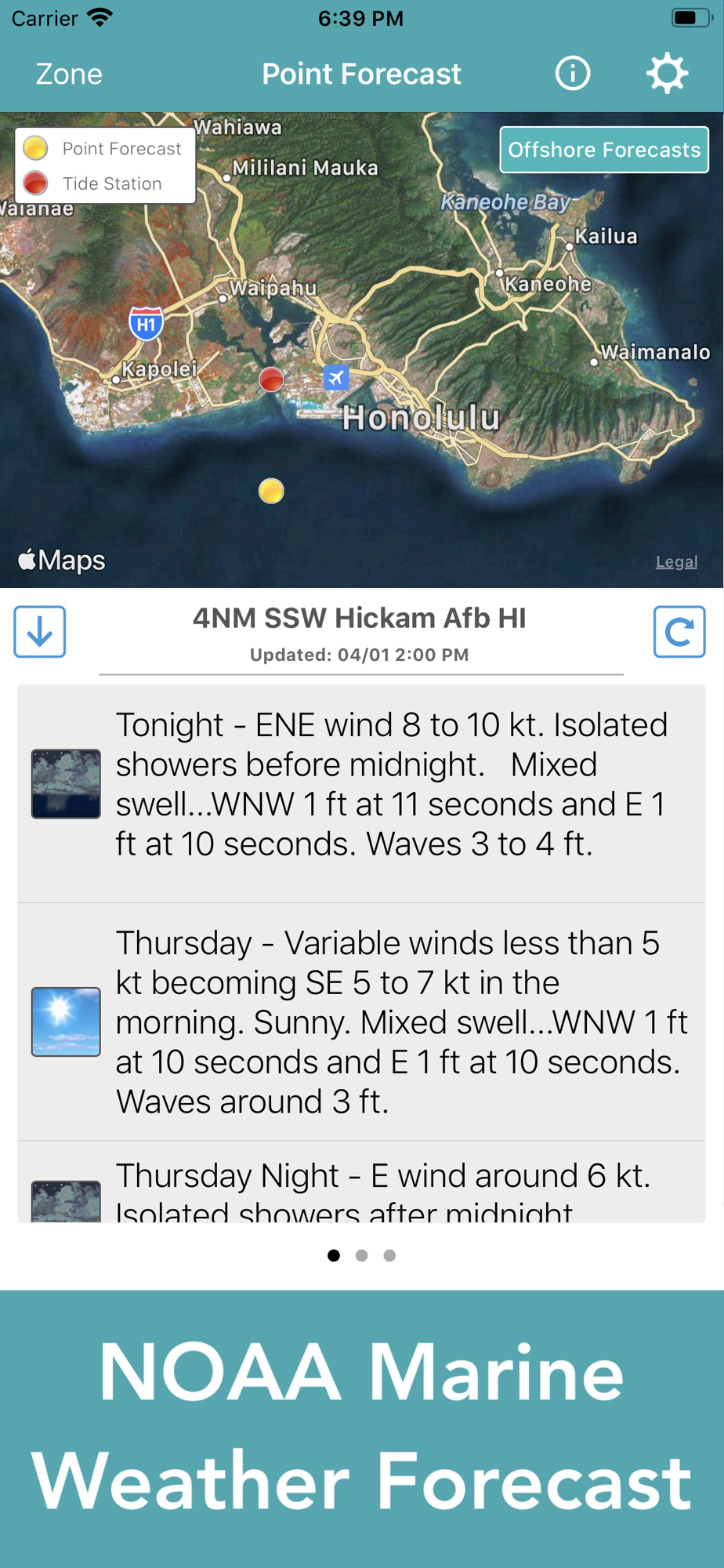 Simply tap anywhere on the map and view NOAA's spot specific point marine weather forecast.