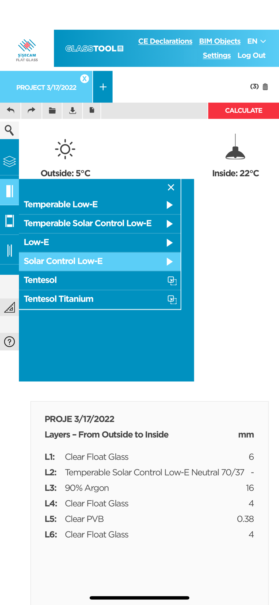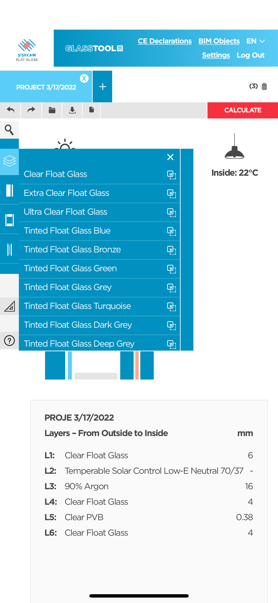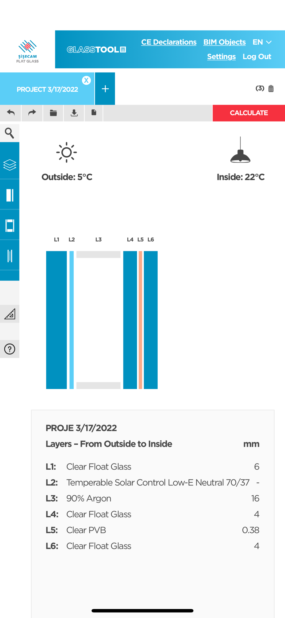 U value etc.) of glass combinations with different properties. Thanks to Şişecam GlassTool’s user-friendly