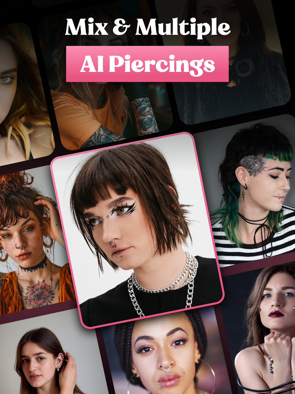 Whether you're exploring new styles or deciding on your next real piercing, our advanced AI makes it easy to visualize different looks in seconds.