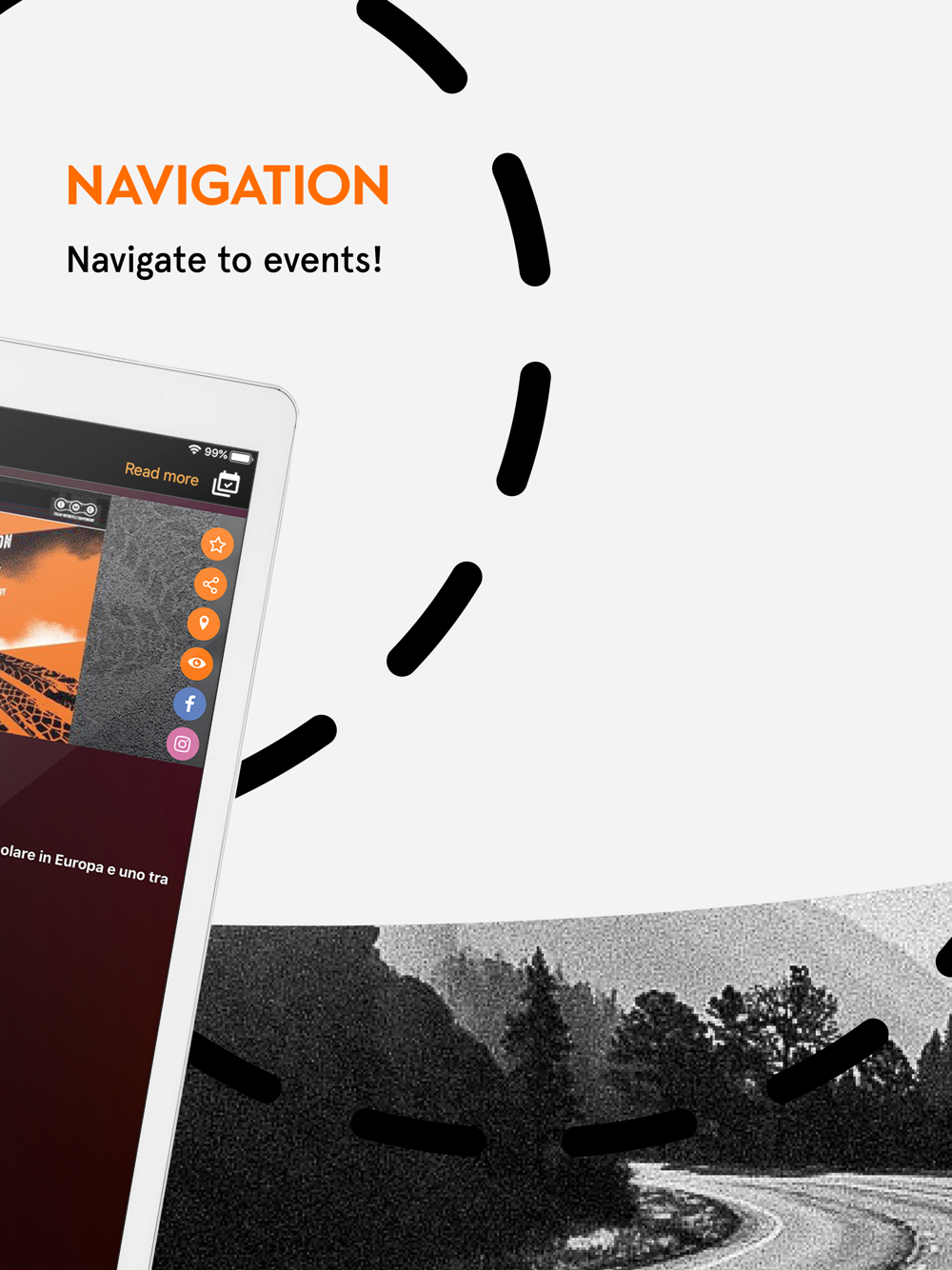 6. Share events and trips with friends – it has never been easier to inform your friends about an event you want to attend! Or maybe you already have a travel route ready for you and your friends? No problem, just share it with them! (they will get the info about events event if they don’t have the app yet)