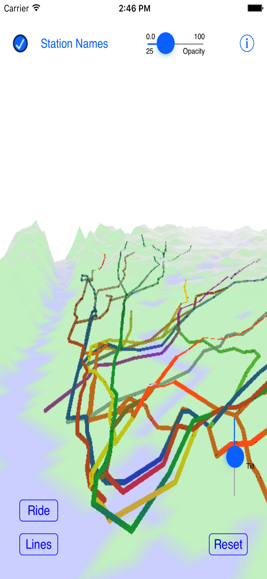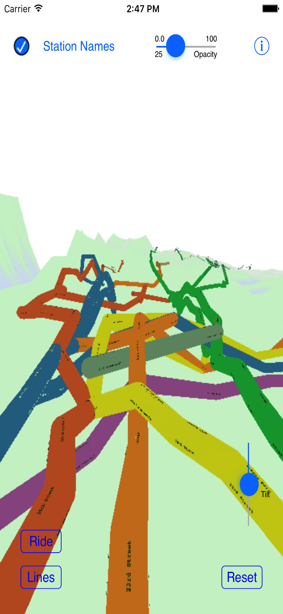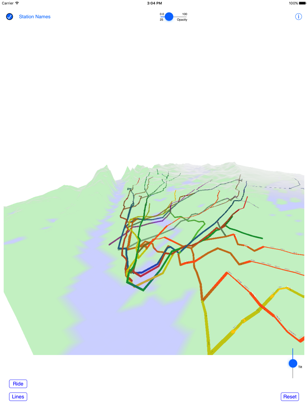 You can take a simulated ride on any of the system's lines, or choose a start and end station and ride on a calculated route between the two stations.