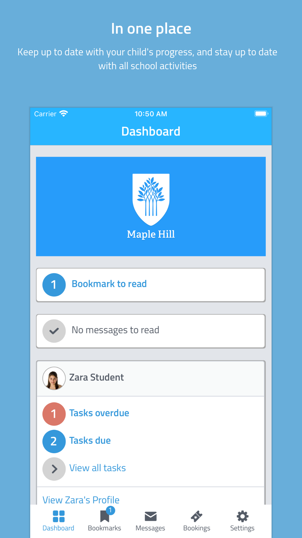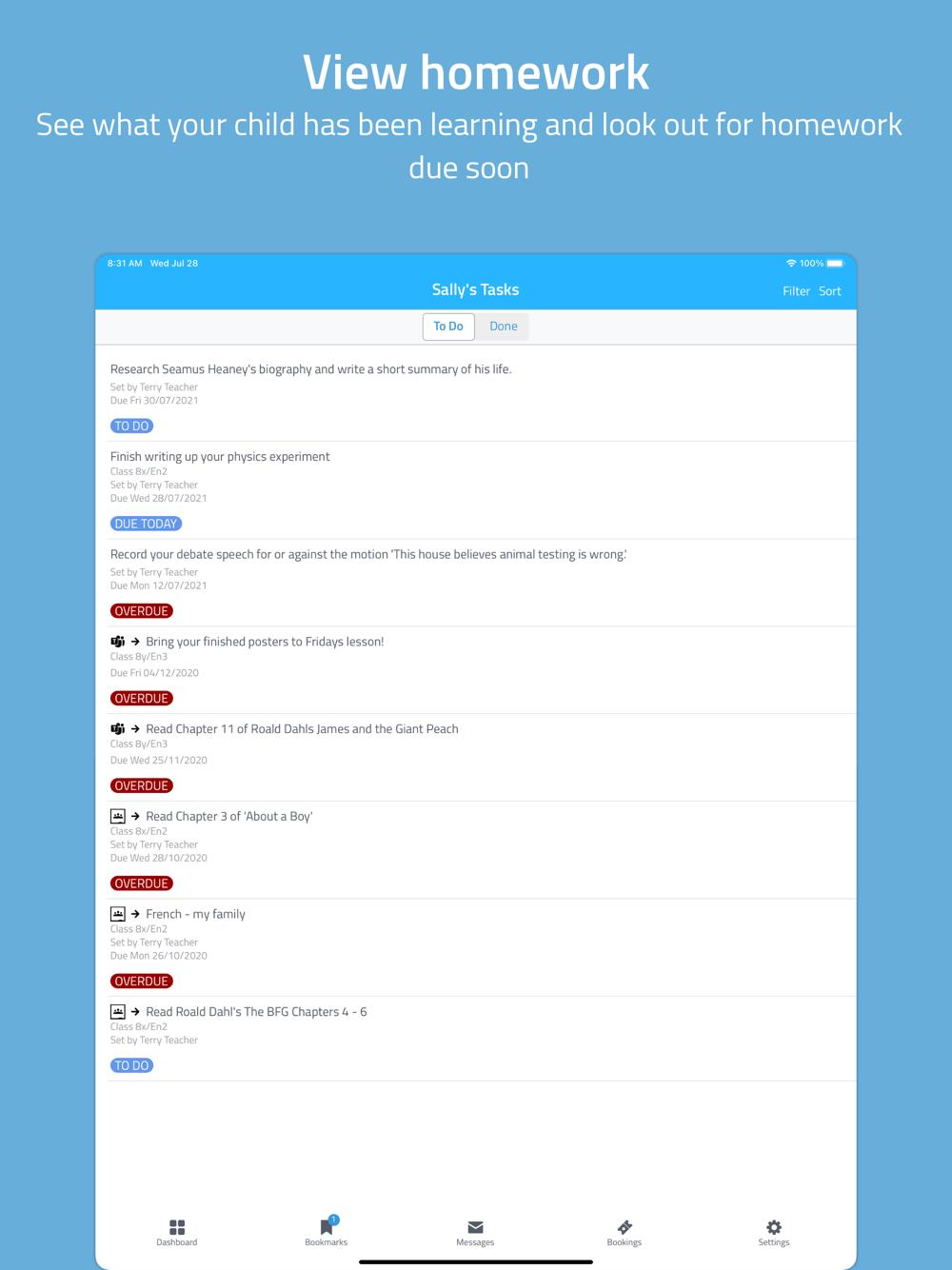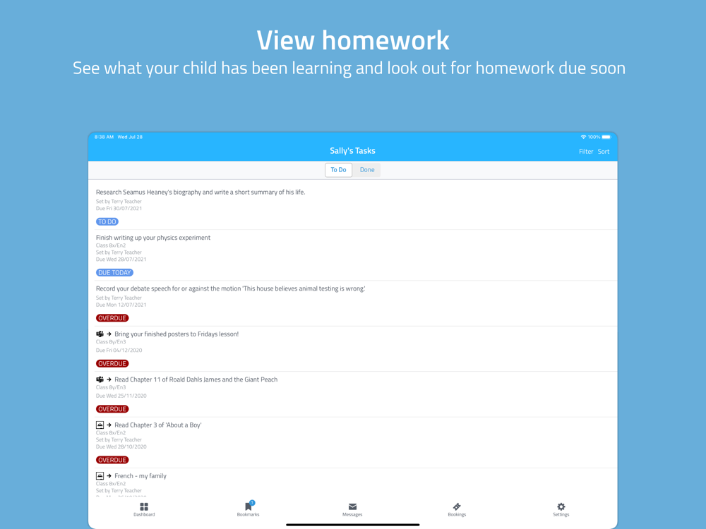 You’ll be able to see when homework is set, when it is due and have easy access to the same learning resources your child is using. You can also get important announcements and messages, such as for upcoming school trips, or Parents’ Evenings straight to your phone.