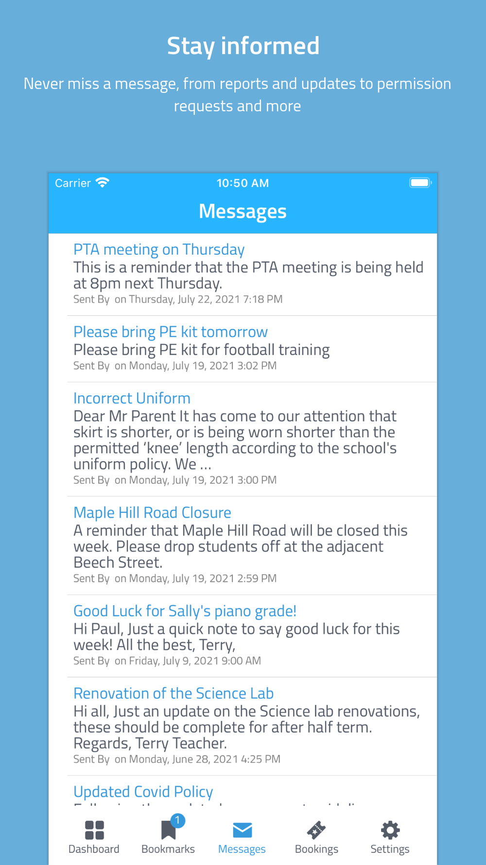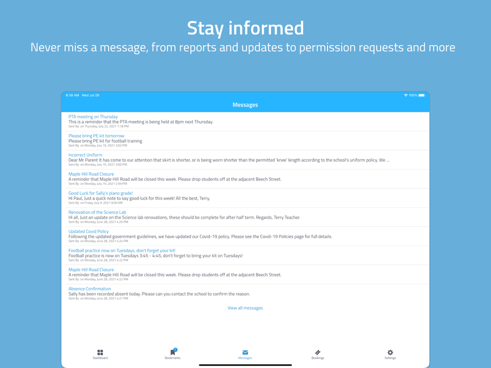 • Instantly receive the latest news and announcements from school